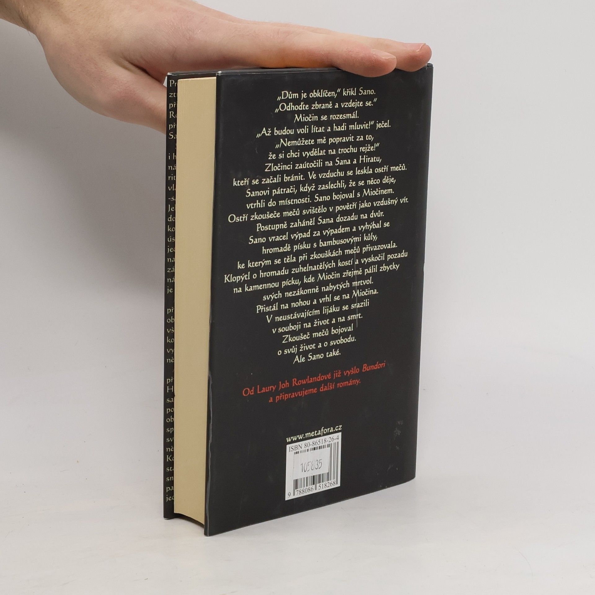 Dobrodružný historický román z Japonska 17. stol. navazuje na román Bundori a vypráví o dalších příhodách mladého samuraje Sano Ičiró. Sano je hlavním vyšetřovatelem šógunovým a těší se jeho přízni pro své úspěšně vyřešené případy rituálních vražd. Komoří Janagisawa v něm však vidí nebezpečného soka a tak ho pod záminkou posílá na dlouhou inspekční cestu do Nagasaki. Tam se právě objevují první "barbaři" - holandští obchodníci. Dochází k vraždě bohatého Holanďana a Sano-jak mu velí samurajská čest-vloží do hry své postavení i život aby vypátral vraha a nastolil spravedlnost. Kniha seznamuje s životním stylem Japonců dob dávno minulých.... celý text