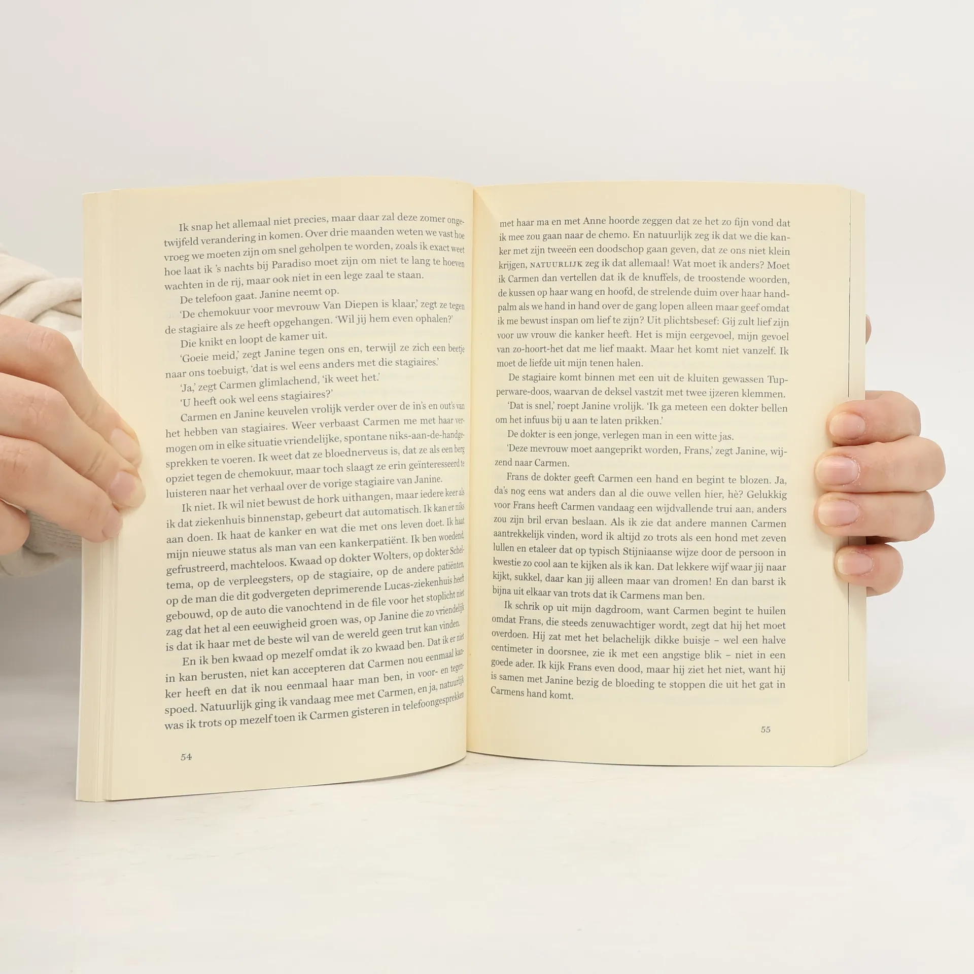 Komt een vrouw bij de dokter is het schaamteloos eerlijke verslag van Stijn, die in de bloei van zijn leven geconfronteerd wordt met de terminale ziekte van zijn vrouw Carmen.