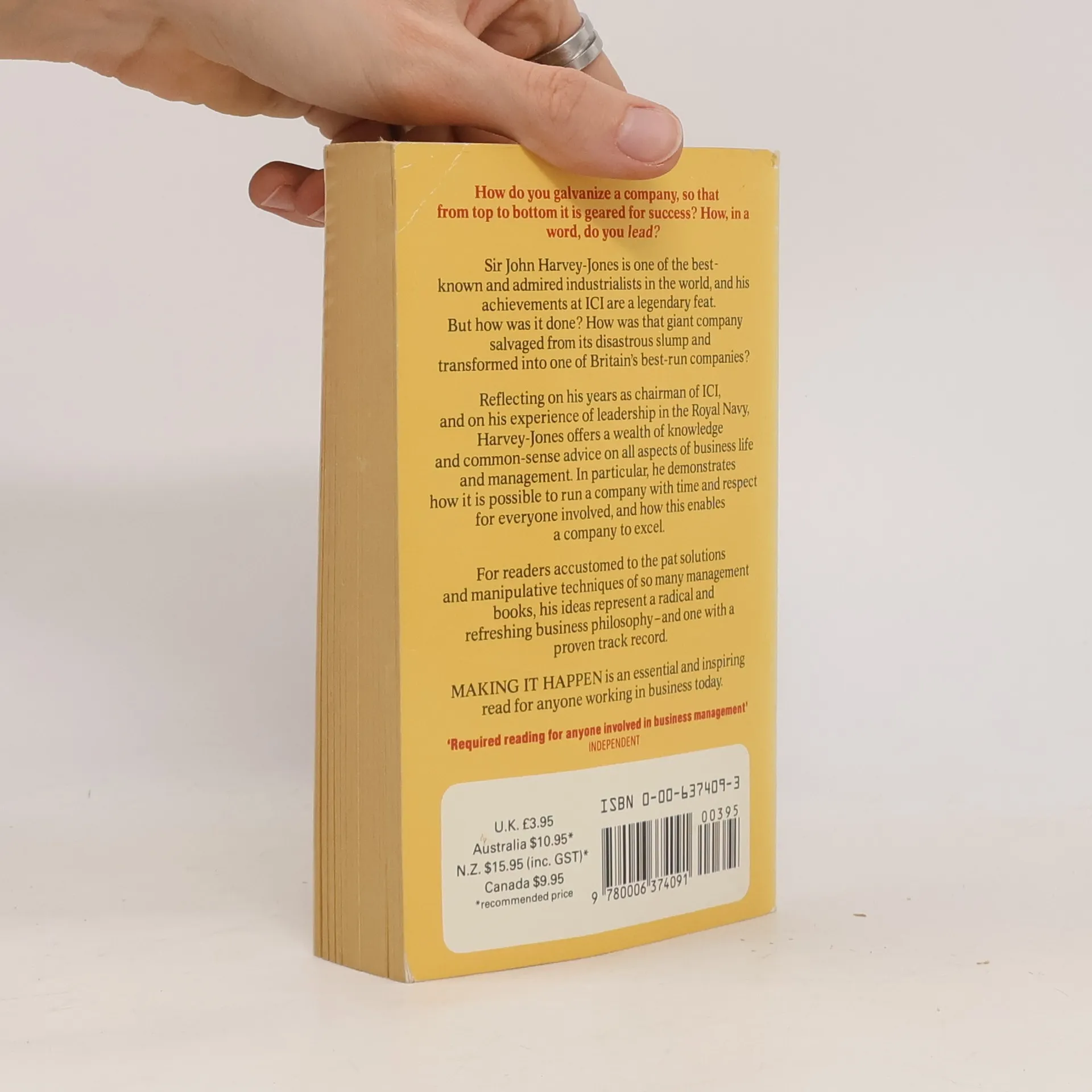 One of the best-known and admired industrialists in the world, Sir John Harvey-Jones' achievements at ICI are a legendary feat. Reflecting on his years as chairman of ICI, and on his experience of leadership in the Royal Navy, he offers advice on all aspects of business life and management.