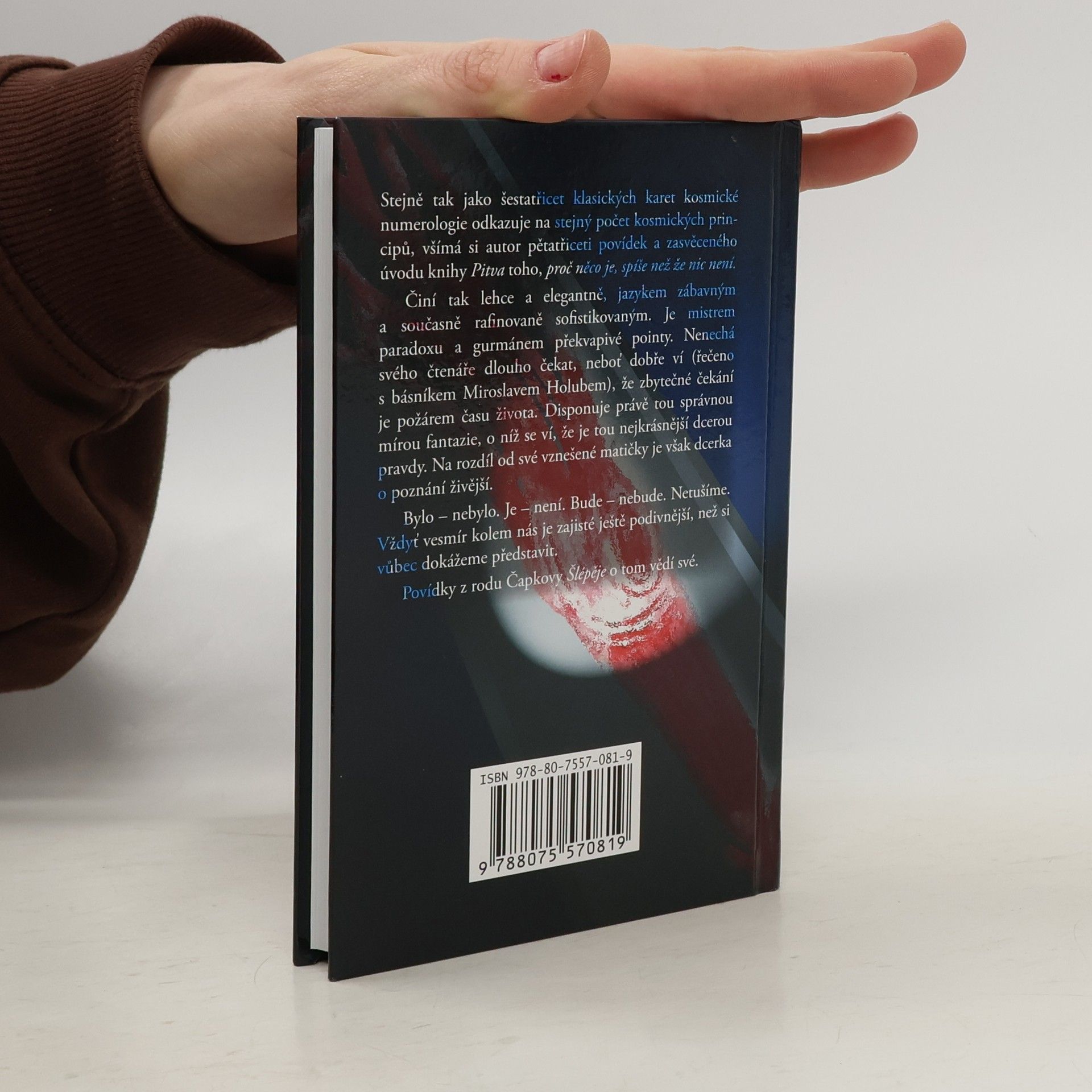 Stejně tak jako šestatřicet klasických karet kosmické numerologie odkazuje na stejný počet kosmických principů, všímá si autor pětatřiceti povídek a zasvěceného úvodu knihy Pitva toho, proč něco je, spíše než že nic není. Činí tak lehce a elegantně, jazykem zábavným a současně rafinovaně sofistikovaným. Je mistrem paradoxu a gurmánem překvapivé pointy. Nenechá svého čtenáře dlouho čekat, neboť dobře ví (řečeno s básníkem Miroslavem Holubem), že zbytečné čekání je požárem času života. Disponuje právě tou správnou mírou fantazie, o níž se ví, že je tou nejkrásnější dcerou pravdy. Na rozdíl od své vznešené matičky je však dcerka o poznání živější. Bylo - nebylo. Je - není. Bude - nebude. Netušíme. Vždyť vesmír kolem nás je zajisté ještě podivnější, než si vůbec dokážeme představit. Povídky z rodu Čapkovy Šlépěje o tom vědí své.
