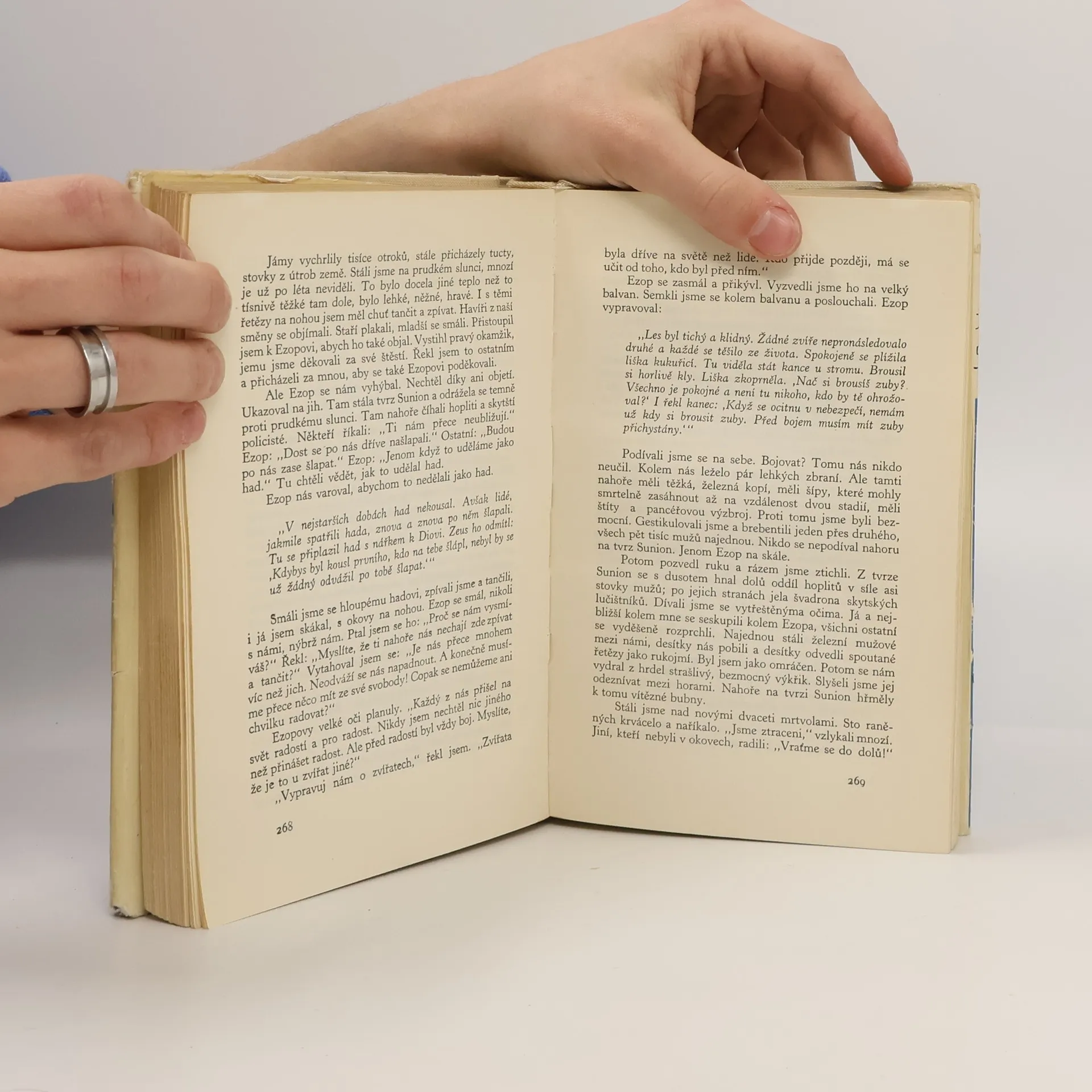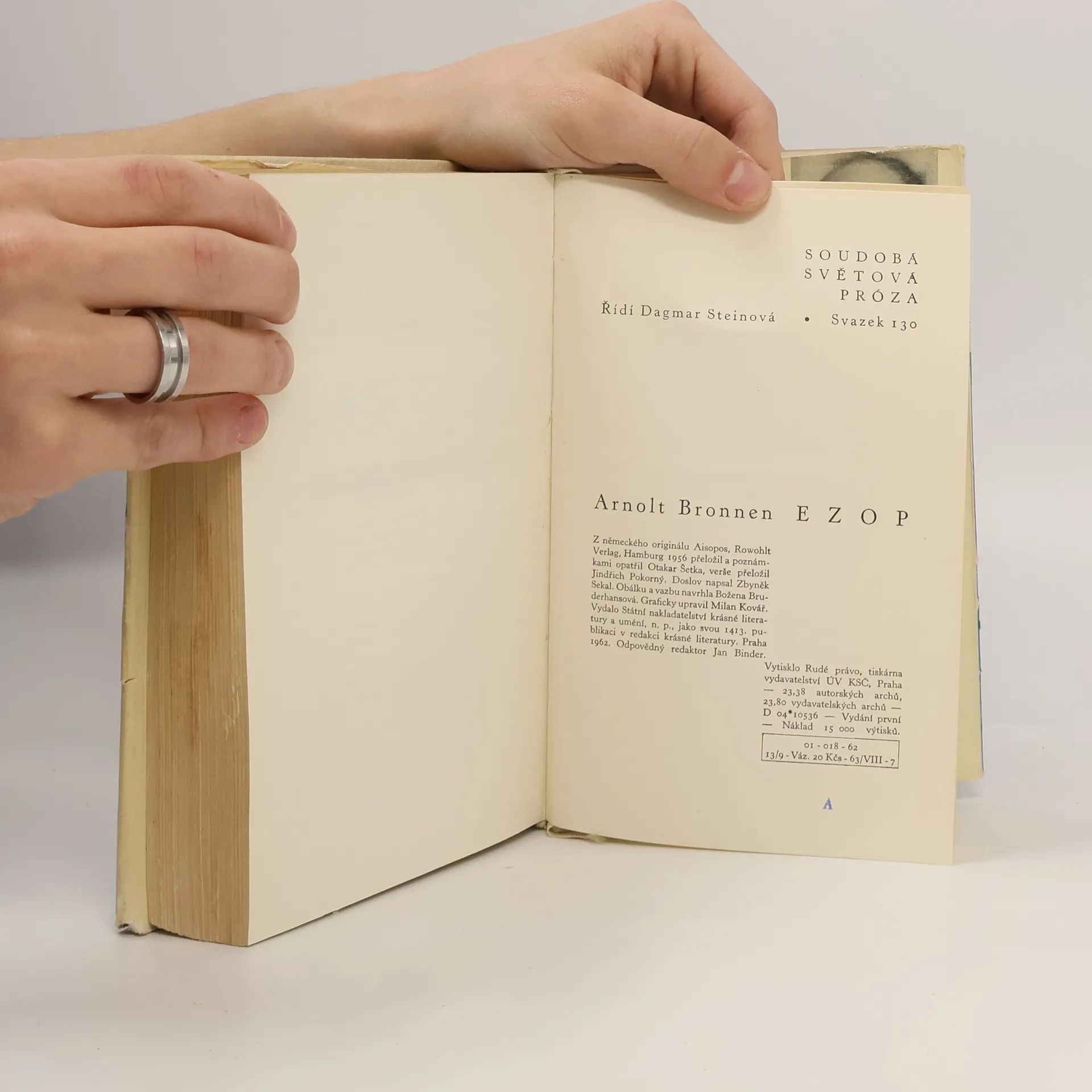 Román německého spisovatele (1895–1960), fiktivní životopis pololegendárního starořeckého bajkáře Ezopa, o němž je dochováno jen málo doložených zpráv. Na pozadí zajímavě, i když pochopitelně ne vždy historicky věrně zachyceného starověkého života jsou tu rozvinuty složité, vzrušující i dojímavé osudy člověka Ezopa a vyzdvižena odpovědnost básníkova poslání ve světě, který ho obklopuje, rozumí mu i nenávidi a nakonec svými mocnými přivodí jeho pád. Ezop : sedm zpráv z Helady / antický román o Ezopovi nově [z řeč.] přeložil a podle dokumentárních pramenů doplnil Arnolt Bronnen ; z německého originálu ... přeložil a poznámkami opatřil Otakar Šetka ; verše přeložil Jindřich Pokorný ; Zbyněk Sekal: K profilu Arnolta Bronnera, doslov