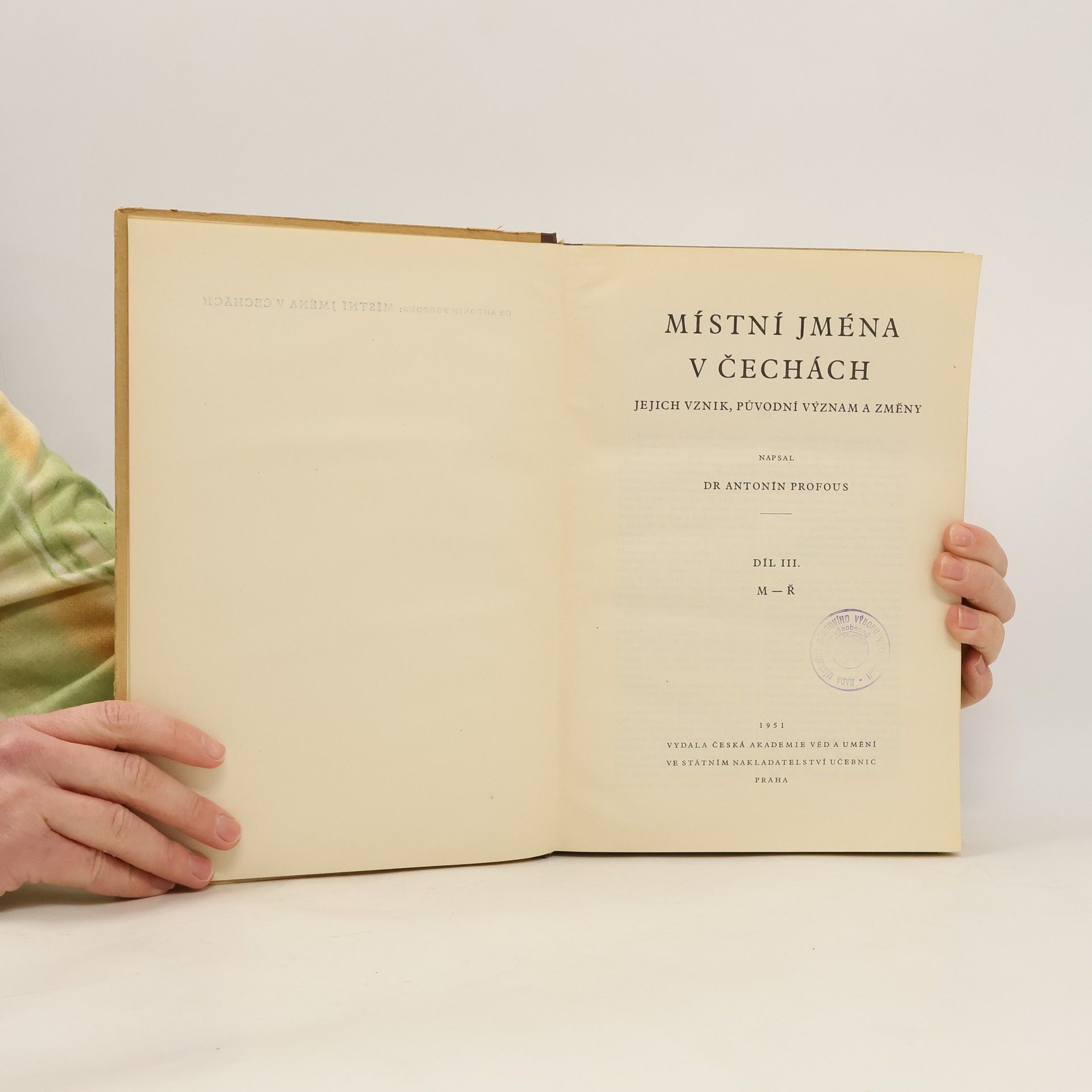 Místní jména v Čechách, jejich vznik, původní význam a změny. III. díl (M-Ř), Antonín Profous