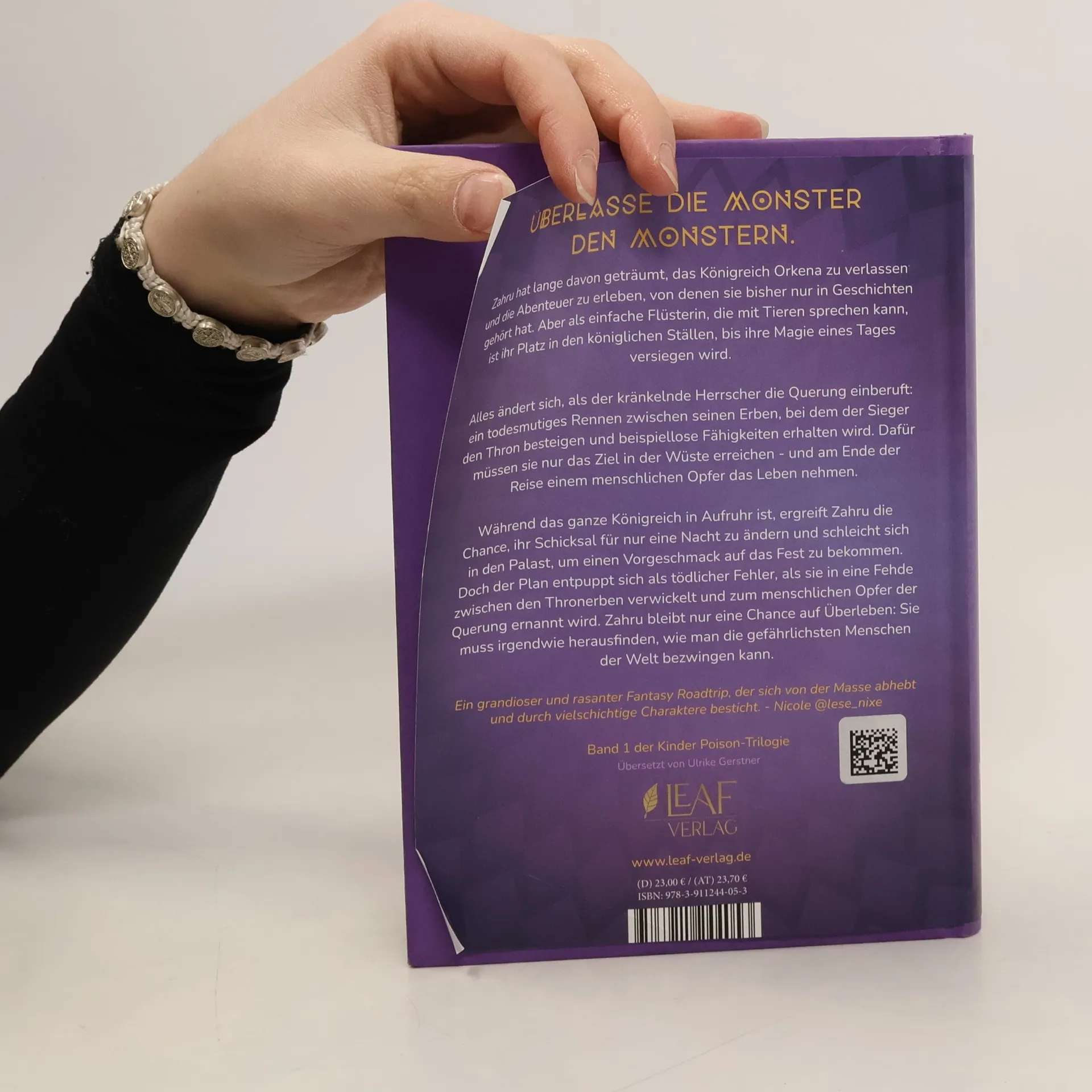 "Überlasse die Monster den Monstern" erzählt die Geschichte von Zahru, einem Mädchen, das als menschliches Opfer in ein tödliches Spiel zwischen drei Thronerben gerät. Um zu überleben, muss sie lernen, die gefährlichsten Menschen der Welt zu besiegen, während sie ihren Traum vom Abenteuer verfolgt.
