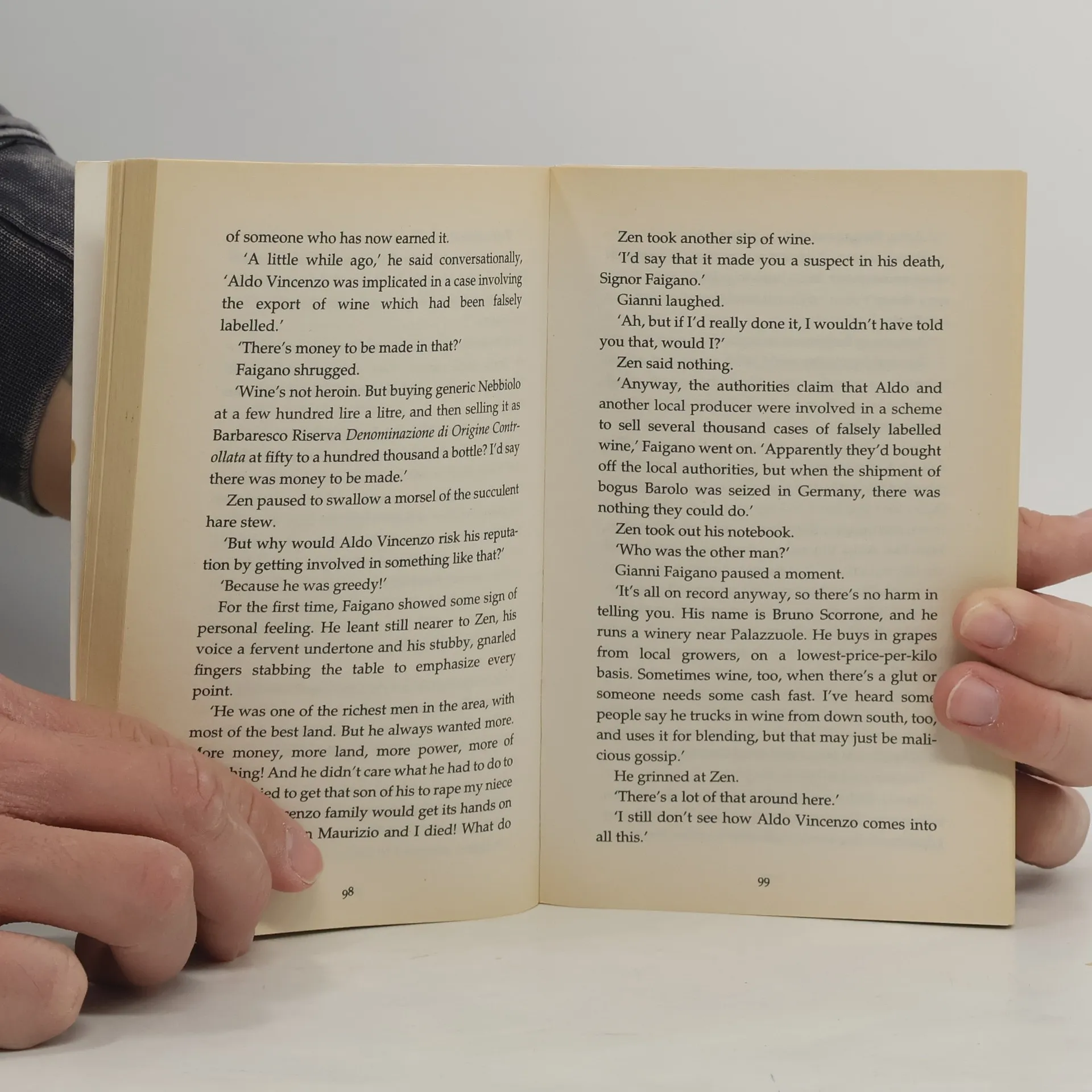 After his adventures under sun-drenched Neapolitan skies in Cosi Fan Tutti, Aurelio Zen finds himself back in Rome, sneezing in a damp wine cellar and being given another unorthodox assignment: to release the jailed scion of an important wine-growing family who is accused of a brutal murder. Zen travels north to an Italy as outwardly serene as Naples was manic. Amid the quiet fields, autumnal skies and crumbling farmhouses of Piedmont, Zen must try to penetrate a traditional culture in which family and soil are inextricably linked. Here secrets can last for generations, and have a finish as long and lingering as that of a good Barbaresco. Zen must also face up to mysteries from his own past, as well as grapple with the greed, envy, hatred and love that are the human components of any landscape.