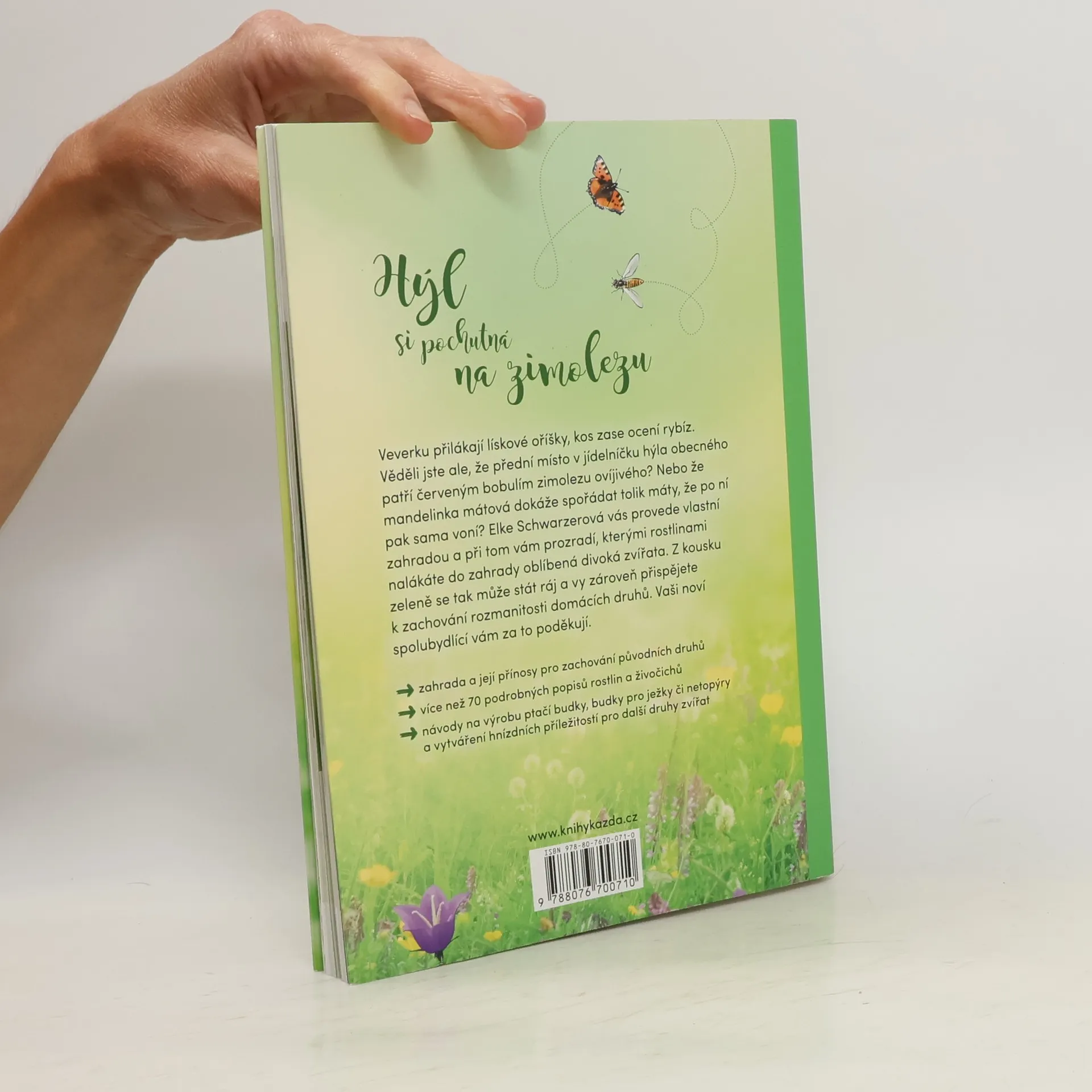Hýl si pochutná na zimolezu. Veverku přilákají lískové oříšky, kos zase ocení rybíz. Věděli jste ale, že přední místo v jídelníčku hýla obecného patří červeným bobulím zimolezu ovíjivého? Nebo že mandelinka mátová dokáže spořádat tolik máty, že po ní pak sama voní? Elke Schwarzerová vás provede vlastní zahradou a při tom vám prozradí, kterými rostlinami nalákáte do zahrady oblíbená divoká zvířata. Z kousku zeleně se tak může stát ráj a vy zároveň přispějete k zachování rozmanitosti domácích druhů. Vaši noví spolubydlící vám za to poděkují.