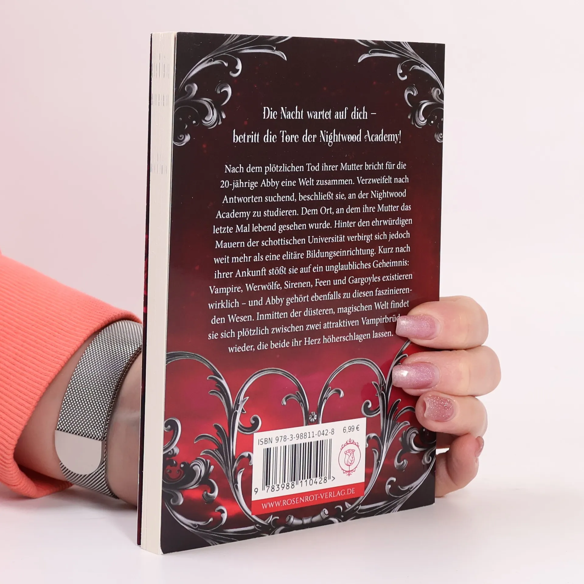 „Die Nacht wartet auf dich“ entführt die 20-jährige Abby an die Nightwood Academy, wo sie nach dem Tod ihrer Mutter Antworten sucht. Dort entdeckt sie eine Welt voller Vampire, Werwölfe und mehr – und ihre eigene besondere Verbindung zu diesen Wesen. Zwischen zwei Vampirbrüdern entfaltet sich ein spannendes Abenteuer.