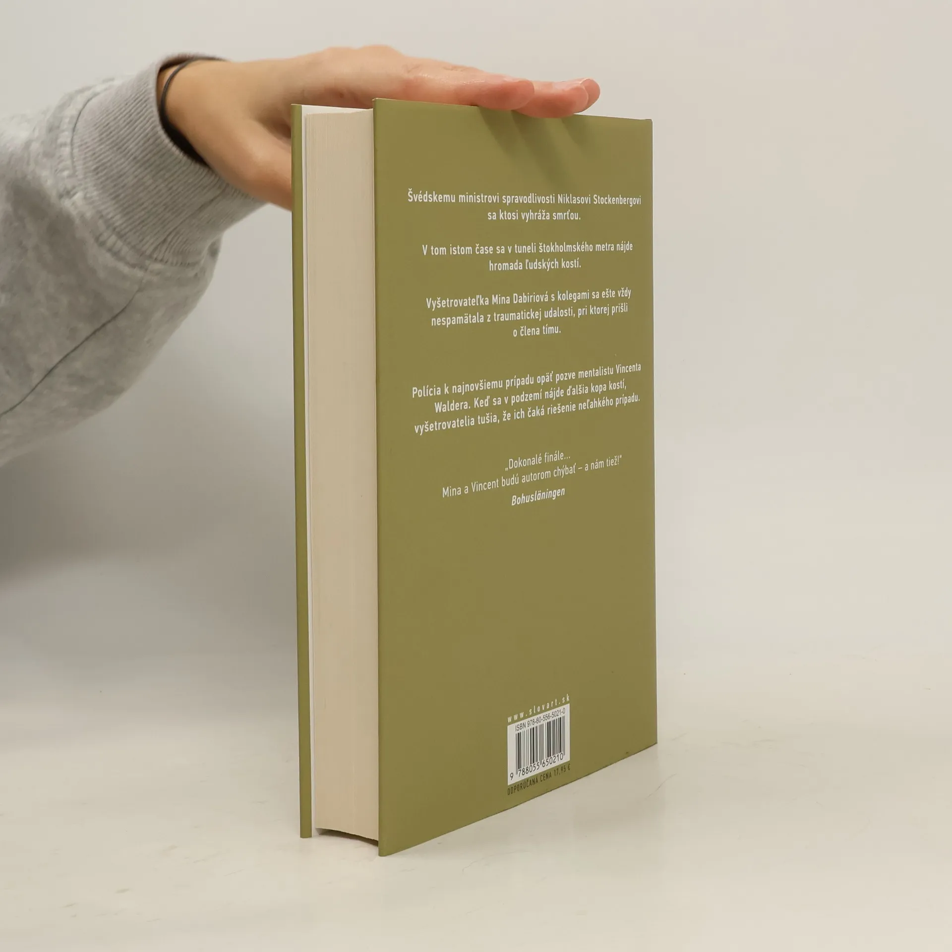 Záverečný diel strhujúcej trilógie autorskej dvojice Camilla Läckberg a Henrik Fexeus. Švédskemu ministrovi spravodlivosti Niklasovi Stockenbergovi sa ktosi vyhráža smrťou. V tom istom čase sa v tuneli štokholmského metra nájde hromada ľudských kostí. Ukáže sa, že patria známemu finančníkovi. Vyšetrovateľka Mina Dabiriová s kolegami sa stále nespamätala zo straty člena tímu. K riešeniu najnovšieho prípadu opäť pozývajú mentalistu Vincenta Waldera. Keď sa v podzemí nájde ďalšia kopa kostí, vyšetrovatelia tušia, že ich čaká neľahký prípad.