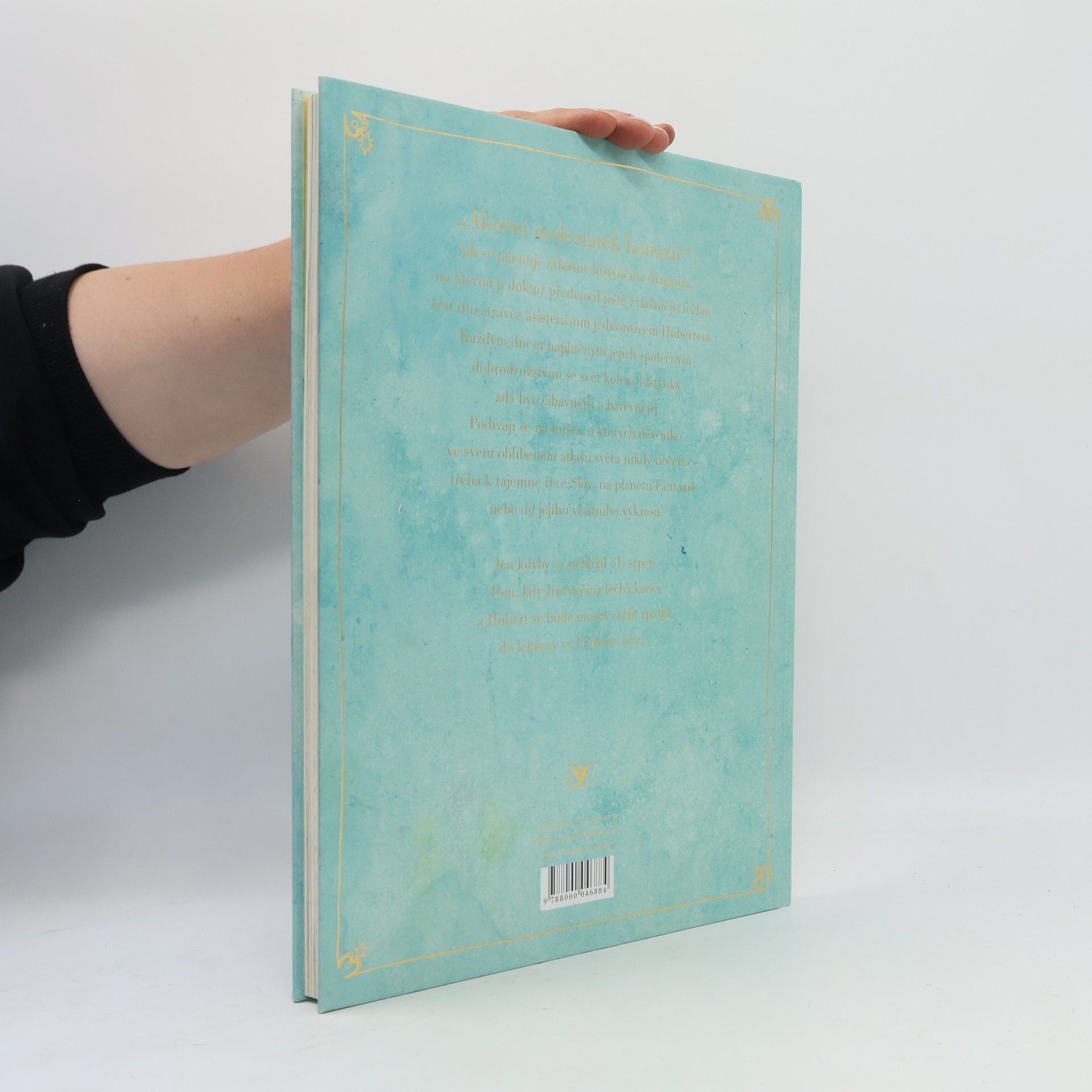 „Akutní nedostatek fantazie“ - tak se jmenuje zvláštní Justýnčina diagnóza, na kterou jí doktor předepsal ještě zvláštnější léčbu - šest dní stráví s asistenčním jednorožcem Hubertem. Každým dnem naplněným jejich společným dobrodružstvím se svět kolem Justýnky zdá být zábavnější a barevnější. Podívají se na místa, o kterých děvčátko ve svém oblíbeném atlasu světa nikdy nečetlo - třeba k tajemné Řece Slov, na Planetu Fantazie nebo do svého vlastního výkresu! Jen kdyby se neblížil 31. srpen. Den, kdy Justýnčina léčba končí a Hubert se bude muset vrátit zpátky do lékárny ve Fialkové ulici. Život bez fantazie by byl pěkná nuda!