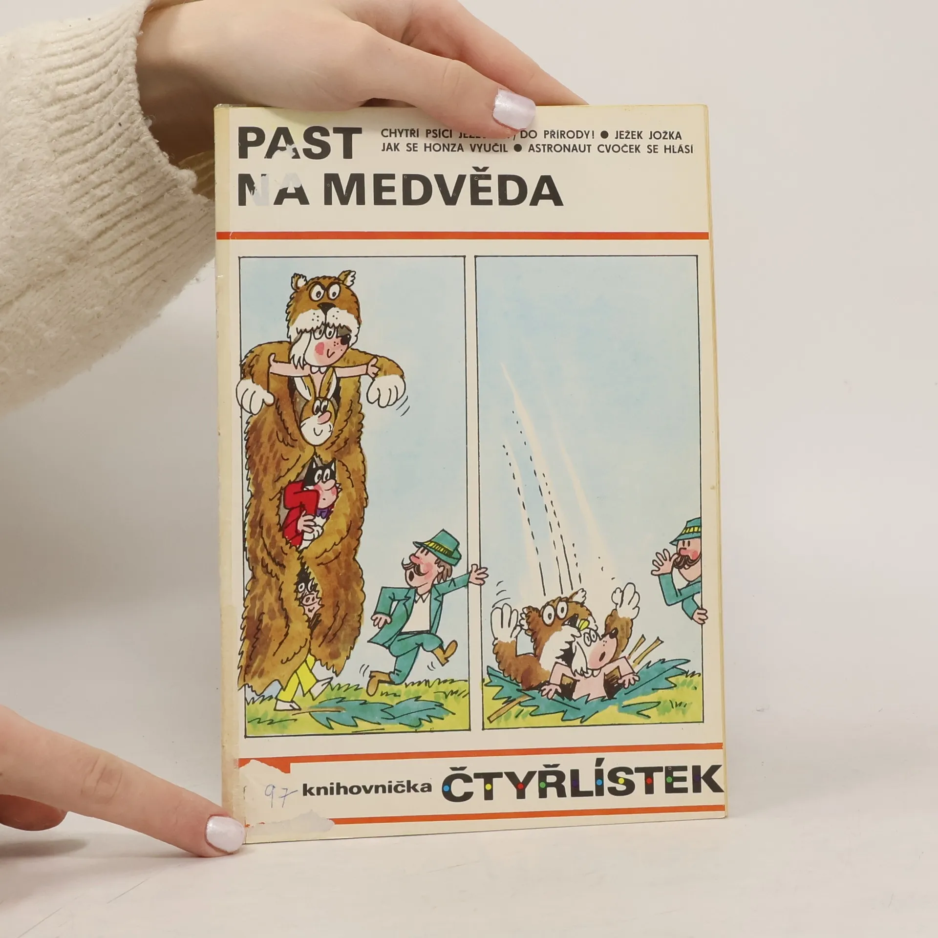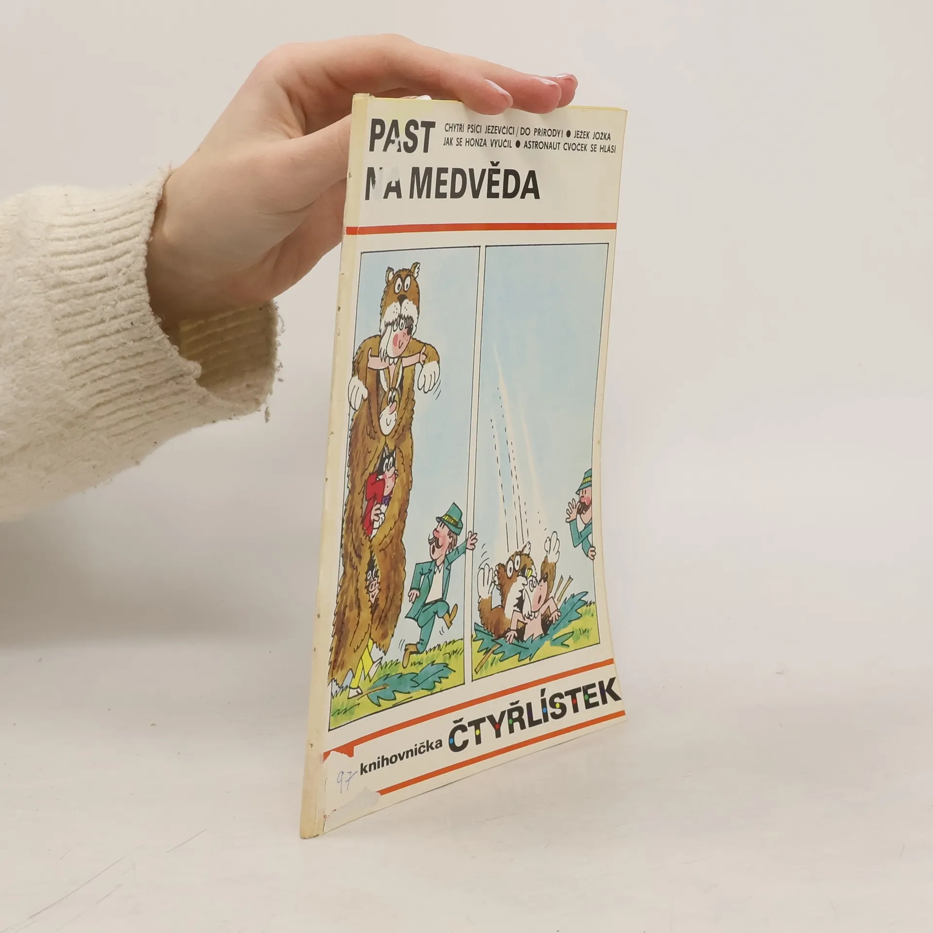 97. díl série. Čtyřlístek - Past na medvěda - Ljuba Štíplová, Jaroslav Němeček. Chytří psíci jezevčíci - Do přírody - Martin Šafránek, Miloš Nesvadba. Jak se Honza vyučil - Angelika Hanauerová, Věra Faltová. Ježek Jožka - Ladislav Čapek. Astronaut Cvoček se hlásí - Planeta robotů -Helena Sýkorová, Josef Lamka.