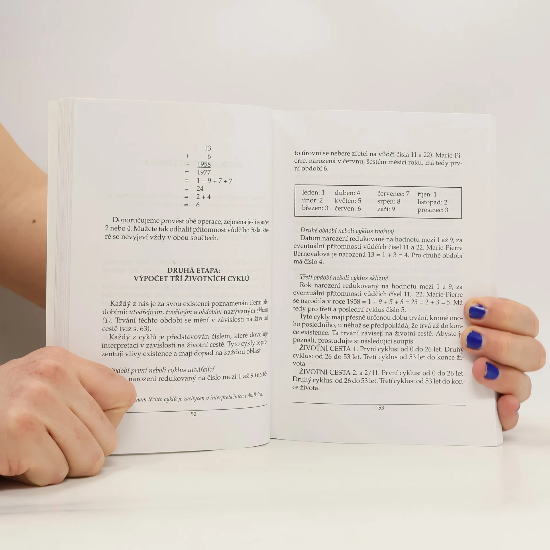 Příručka usiluje o proniknutí do magie čísel, dešifruje osobnost podle jména, podává rozbor cyklů života podle data narození apod