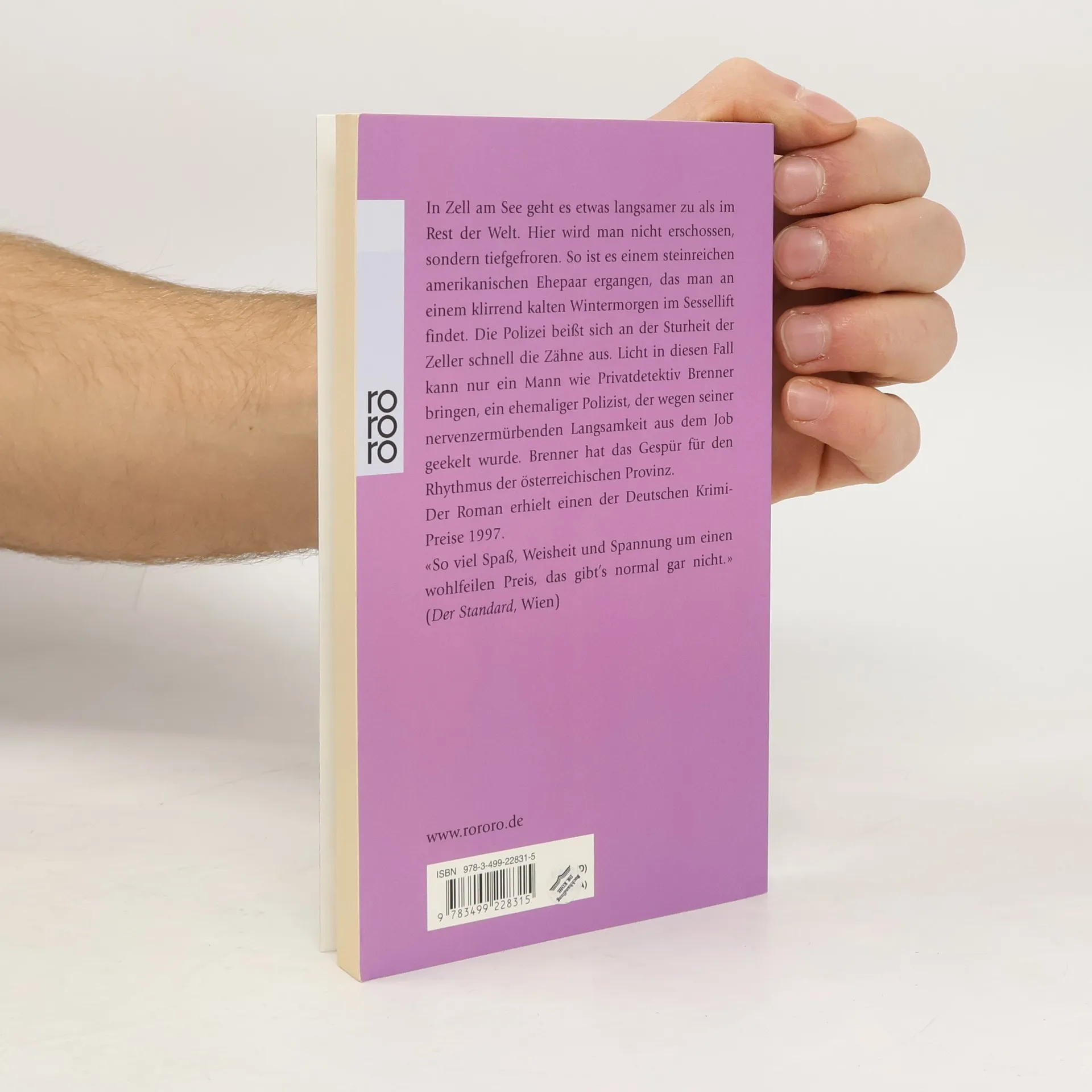 In Zell am See geht es etwas langsamer zu als im Rest der Welt. Hier wird man nicht erschossen., sondern tiefgefroren. So ist es einem steinreichen amerikanischen Ehepaar ergangen, das man an einem klirrend kalten Wintermorgen in einem Sessellift findet. Die Polizei beißt sich an der Sturheit der Zeller schnell die Zähne aus. Licht in diesen Fall kann nur ein Mann wie Privatdetektiv Brenner bringen, ein ehemaliger Polizist, der wegen seiner nervenzermürbenden Langsamkeit aus dem Job geekelt wurde. Brenner hat das Gespür für den Rhythmus der österreichischen Provinz.Der Roman erhielt den Deutschen Krimipreis 1997.«So viel Spaß, Weisheit und Spannung um einen wohlfeilen Preis, das gibt’s normal gar nicht.» (Der Standard, Wien)