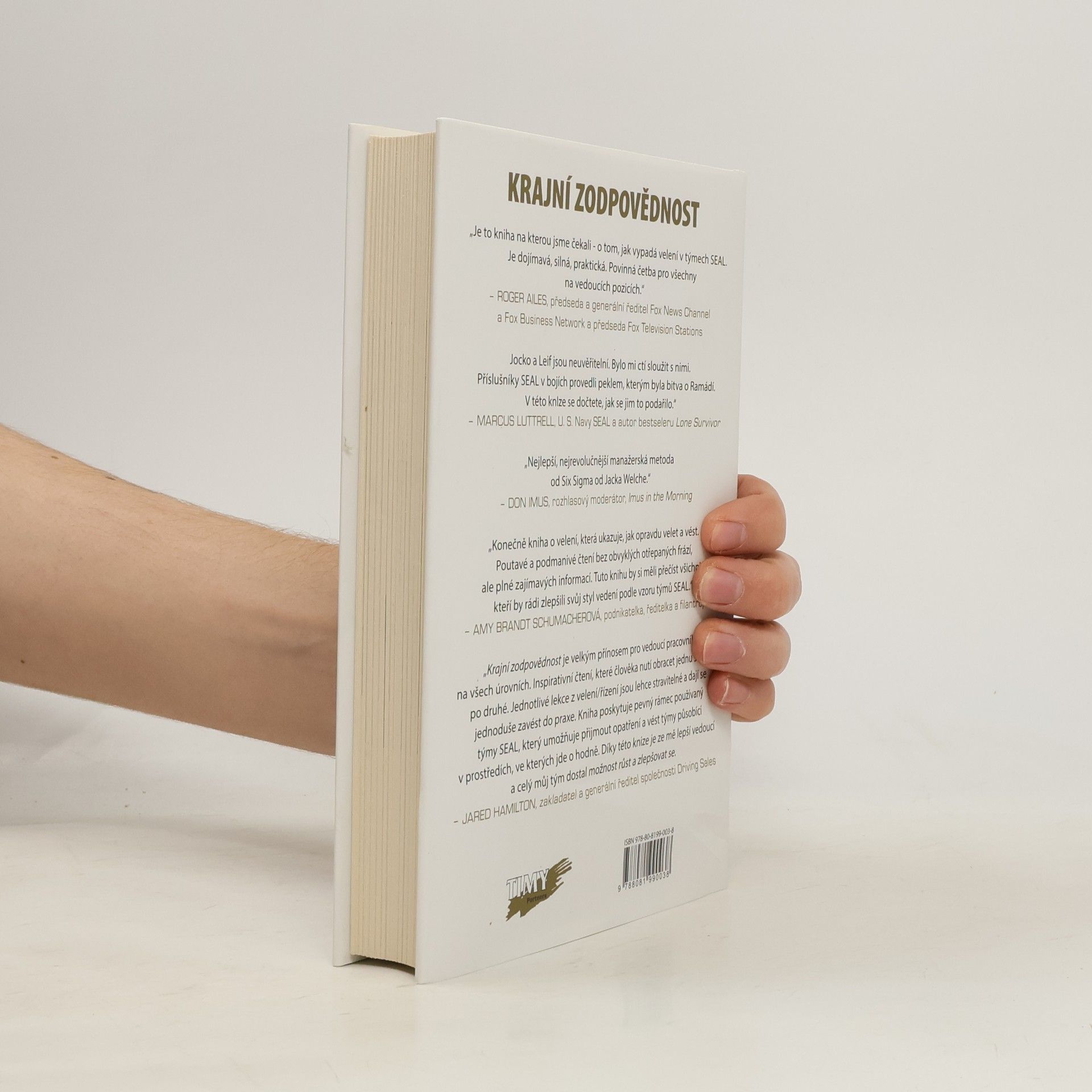Velení a vítězství v SEAL elitních jednotkách amerického námořnictva přináší strhující vyprávění s praktickými poučeními, která vyzývají vedoucí pracovníky k efektivnímu vedení a dosažení úspěchu. Speciální jednotka SEAL, vedená Jockem Willinkem a Leifem Babinem, byla nasazena v Iráku, aby splnila obtížný úkol: obnovit bezpečnost v Ramádí, městě považovaném za „ztracené“. Během hrdinských činů a tragických ztrát si uvědomili, že klíčovým faktorem úspěchu je velitel na každé úrovni. Po návratu z mise autoři vytvořili výcvik zaměřený na velení, čímž pomohli formovat novou generaci velitelů v SEAL. Založili společnost Echelon Front, kde učí principy velení, které aplikují i v podnikové sféře. Jejich klienti zahrnují jak začínající firmy, tak i společnosti z žebříčku Fortune 500. Autoři podrobně popisují myšlení a principy SEAL, které umožňují plnit náročné úkoly, a ukazují, jak je možné tyto principy aplikovat v různých organizacích. Každá kapitola se zaměřuje na konkrétní téma, jako je decentralizované vedení nebo postupování vpřed s krytím, a poskytuje praktické rady, jak tyto principy implementovat v řízení lidí.