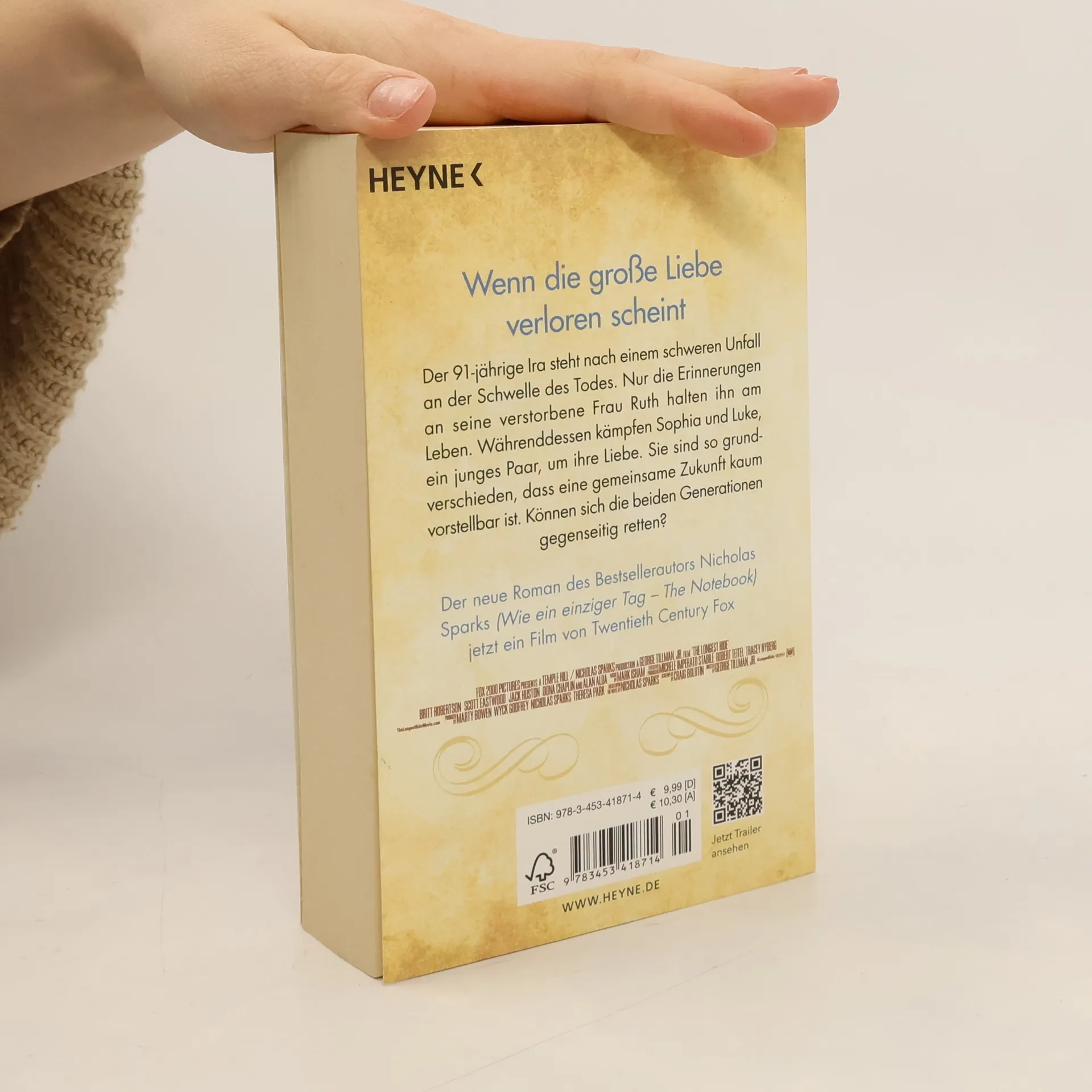 Das Buch zum Film Der 91-jährige Ira steht nach einem schweren Unfall an der Schwelle des Todes. Nur die Erinnerungen an seine verstorbene Frau Ruth halten ihn am Leben. Währenddessen kämpfen Luke und Sophia, ein junges Paar, um ihre Liebe: Sie sind so verschieden, dass eine gemeinsame Zukunft kaum vorstellbar ist. Können sich die beiden Generationen gegenseitig retten?