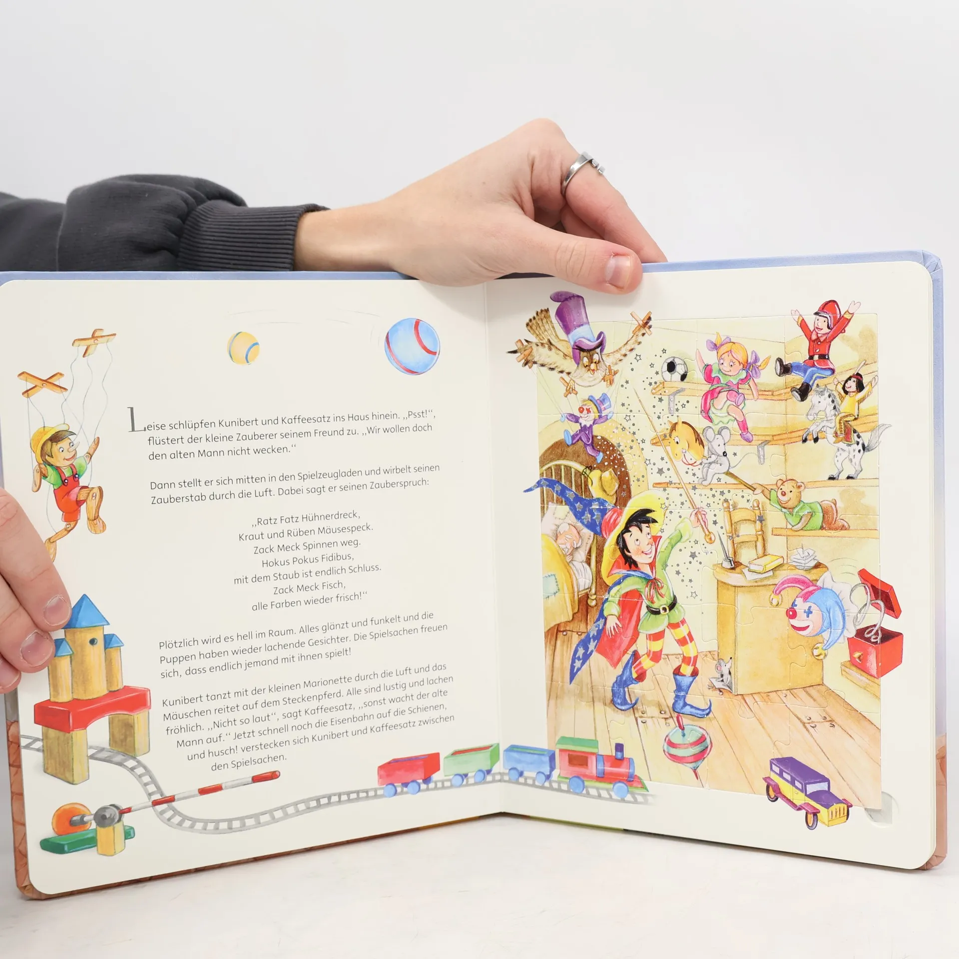 Der kleine Zauberer Kaffeesatz und die kluge Eule Kunibert erleben in einer stürmischen Herbstnacht ein magisches Abenteuer. Sie treffen einen alten Mann, der Hilfe benötigt. Eine zauberhafte Geschichte voller Hokuspokus, ergänzt durch 4 Puzzles für spannenden Vorlesespaß!