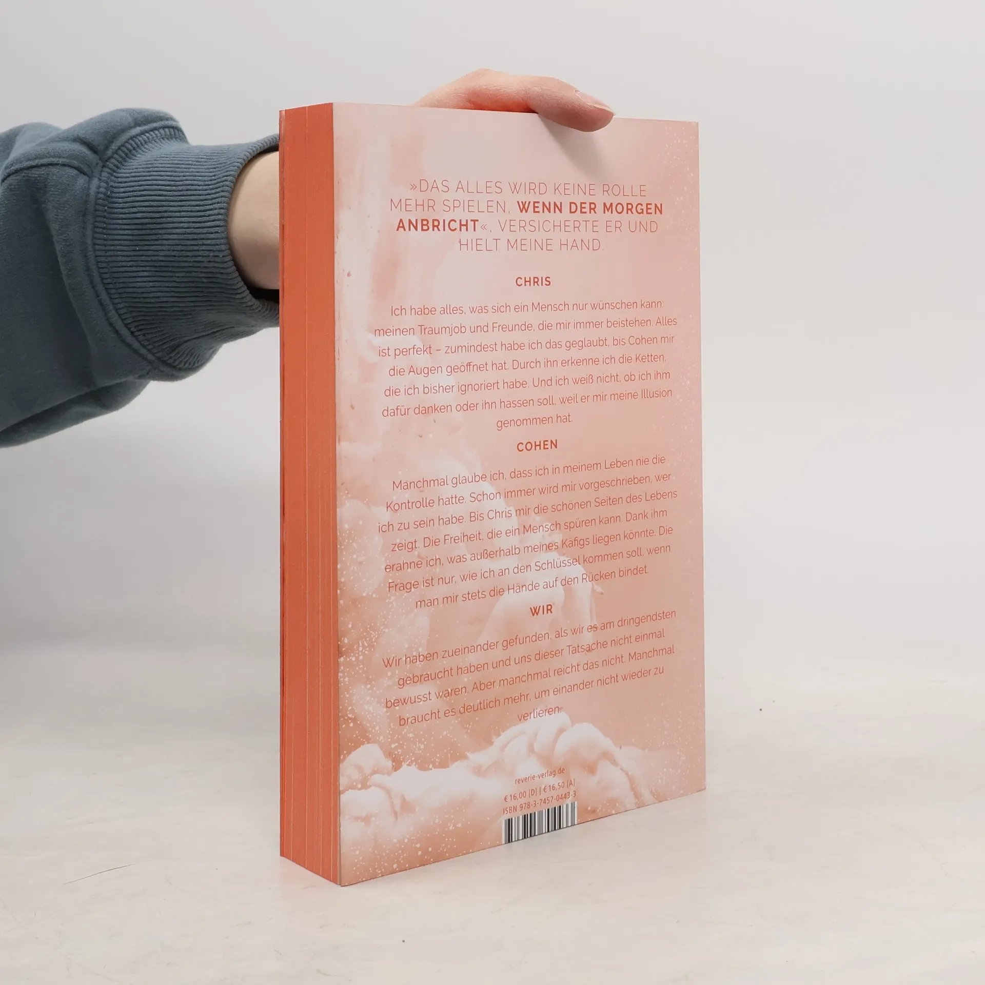 In "Das alles wird keine Rolle mehr spielen, wenn der Morgen anbricht" kämpfen Chris und Cohen mit ihren inneren Fesseln. Chris hat ein perfektes Leben, bis Cohen ihm die Wahrheit zeigt. Cohen hingegen sehnt sich nach Freiheit, die ihm verwehrt bleibt. Ihre Begegnung bringt sie dazu, ihre Illusionen und Wünsche zu hinterfragen.