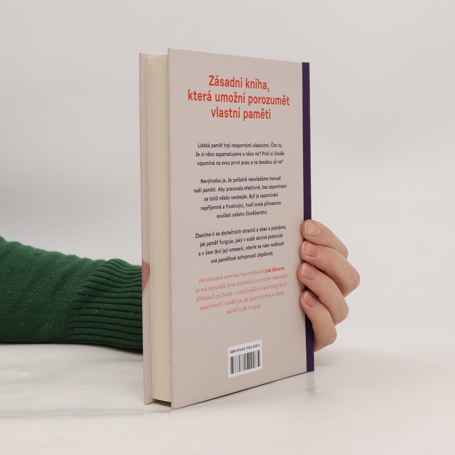 Zásadní kniha, která umožní porozumění vlastní paměti. Lidská paměť trpí nespornými slabostmi. Čím to, že si něco zapamatujeme a něco ne? Proč si člověk vzpomíná na svou první pusu a na desátou už ne? Nevýhodou je, že pořádně neovládáme manuál naší paměti. Aby pracovala efektivně, bez zapomínání se totiž někdy neobejde. Byť je zapomínání nepříjemné a frustrující, tvoří zcela přirozenou součást našeho člověčenství. Jestliže porozumíme, jak paměť doopravdy funguje, její výpadky nás přestanou vyvádět z míry. Zbavíme-li se zbytečných strachů a obav a poznáme, jak paměť funguje, jaký v sobě skrývá potenciál a v čem tkví její omezení, otevře se nám možnost své paměťové schopnosti zlepšovat. Renomovaná americká neurovědkyně Lisa Genova ve své nejnovější knize poutavě a na mnoha názorných příkladech ze života i z nejrůznějších psychologických experimentů vysvětluje, jak funguje lidská paměť. Od autorky bestselleru Pořád jsem to já.