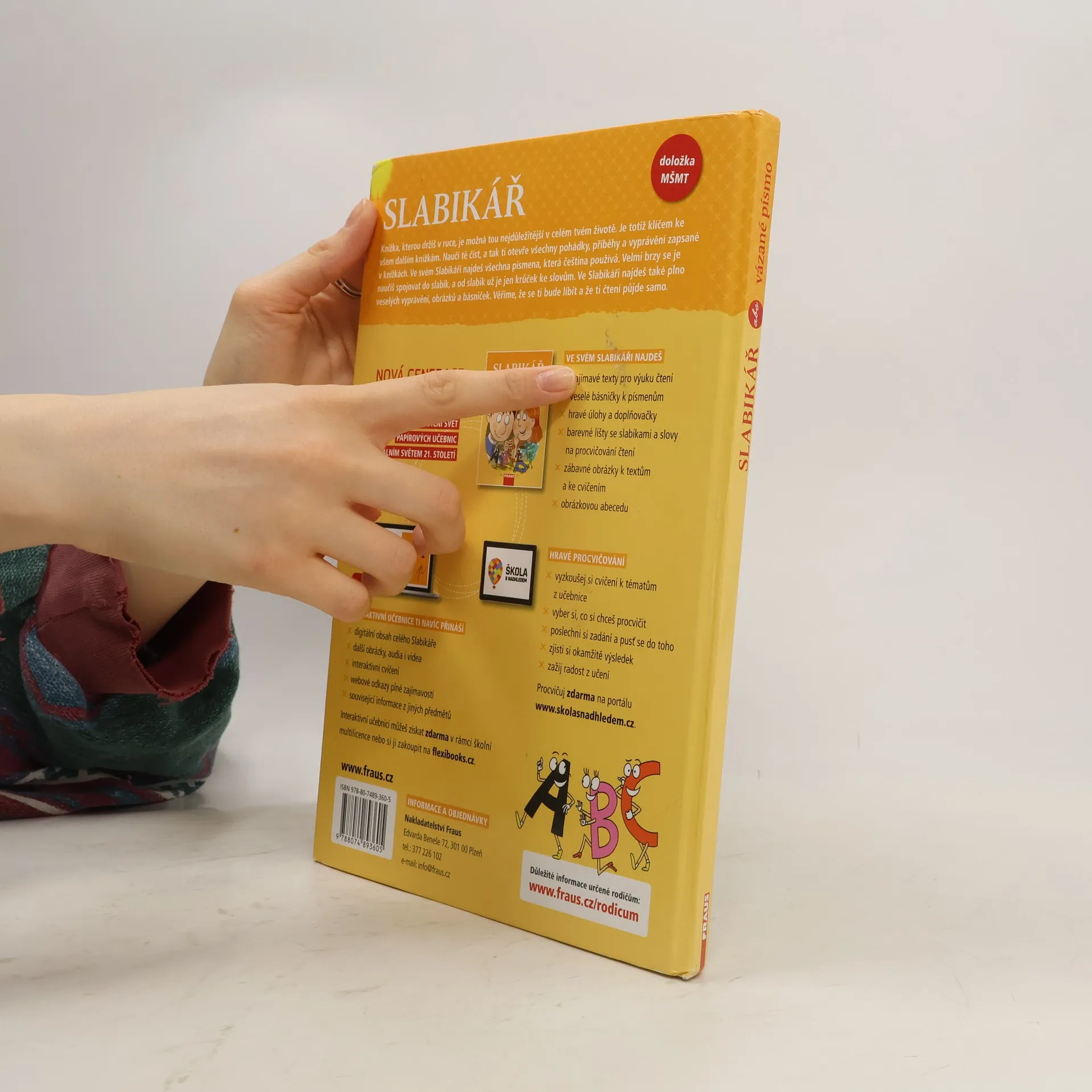 Slabikář navazuje na Živou abecedu a vyvozuje celá slova a věty. Nově jsou součástí Slabikáře čtecí tabulky s velkou zásobou slov ke čtení. Ke Slabikáři se vážou písanky a lze ho vhodně propojit s Čítankou 1.