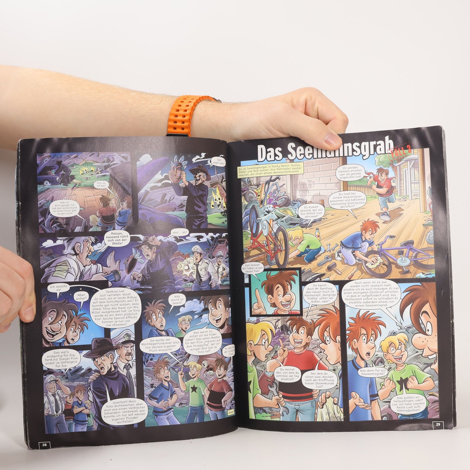 In Rocky Beach herrscht Chaos: Ein Seeungeheuer, ein Poltergeist und ein alter Indianerfluch sorgen für Verwirrung. Nur Justus, Peter und Bob können das Rätsel lösen! Die coolen Cartoons und spannenden Rätsel begeistern Comic-Fans und Kinder gleichermaßen.