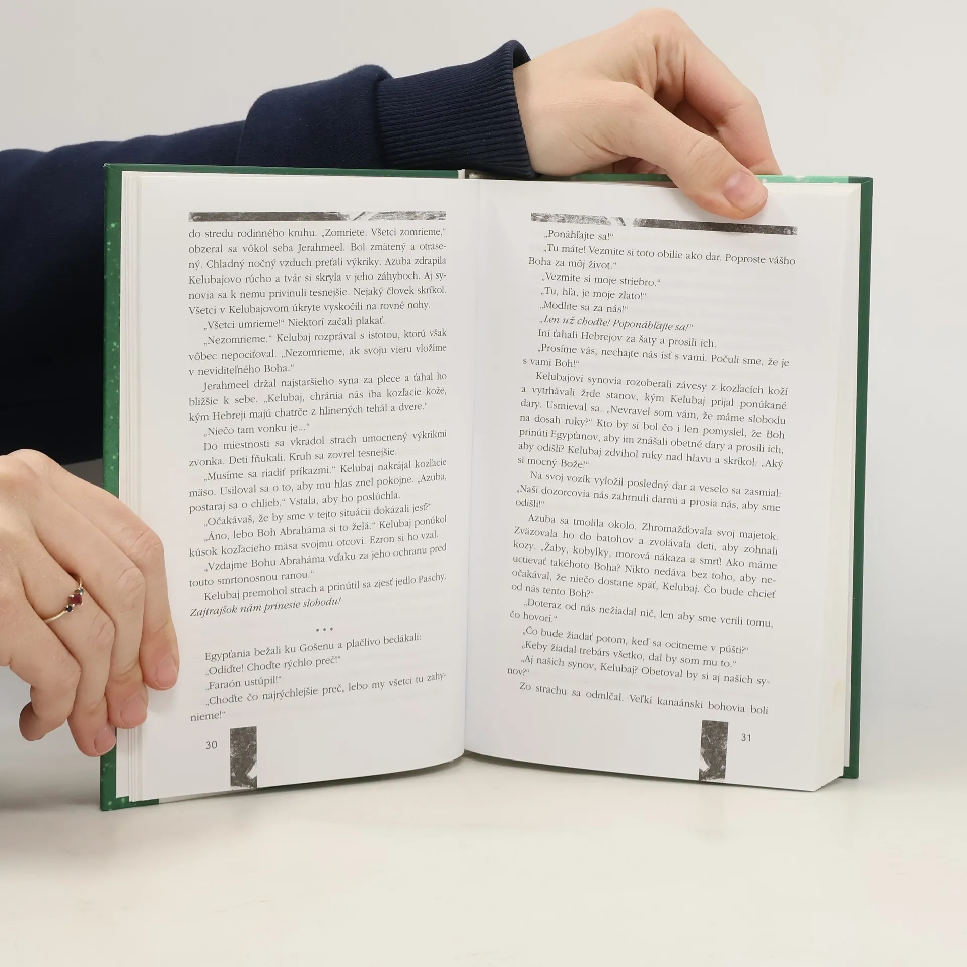 Druhou z cyklu noviel Francine Riversovej Výnimoční biblickí muži je novela Kaleb. Kelubaj prezývaný Kaleb je bojovník a vodca, ktorý vie, čo chce a ide za svojím cieľom. Túžbou tohto Egypťana je nájsť si miesto medzi vyvoleným ľudom na základe jemnej príbuzenskej nite, ktorá ho spája s Júdovým kmeňom. Táto jemná niť ho vierou a úsilím o vernosť Bohu Izraela zachráni z pohromami trestaného Egypta. Urobí z neho vodcu a bojovníka, hoci vždy stojí v tieni veľkých osobností, akými boli Mojžiš, Áron a Jozue. Z dnešného pohľadu sa nám môže príbeh dávnovekých bojovníkov javiť ako tvrdý a neľútostný. No na pozadí tvrdej doby, v ktorej hrdinovia Starého zákona žili, sa rozvíja ich nezlomná viera, odvaha, česť a sila, no i ľudské pády, chyby a i ťažké hriechy, ktoré nie sú našej civilizácii cudzie. Kaleb a Jozue napokon ako jediní z generácie otrokov vošli do prisľúbenej zeme, lebo dôverovali Pánovi. Nebúrili sa proti Bohu, tak ako neverný Izrael, ktorý prehliadal nespočetné Božie dary a otáčal sa za plnými misami a pohanstvom Egypta. Autorka nám dáva jedinečnú možnosť pozrieť sa na hlboké príbehy Starého zákona z pohľadu „obyčajného človeka“. Nájsť sa priamo v centre udalostí. Prežiť ich spolu s hlavnou postavou, ktorej osudy nám nemusia byť cudzie. Symbolizujú aj naše vnútorné zápasy, potrebu „vyčistiť“ si naše vnútro od modiel doby. Zrkadlia aj naše hľadania a otázky o živote i viere...