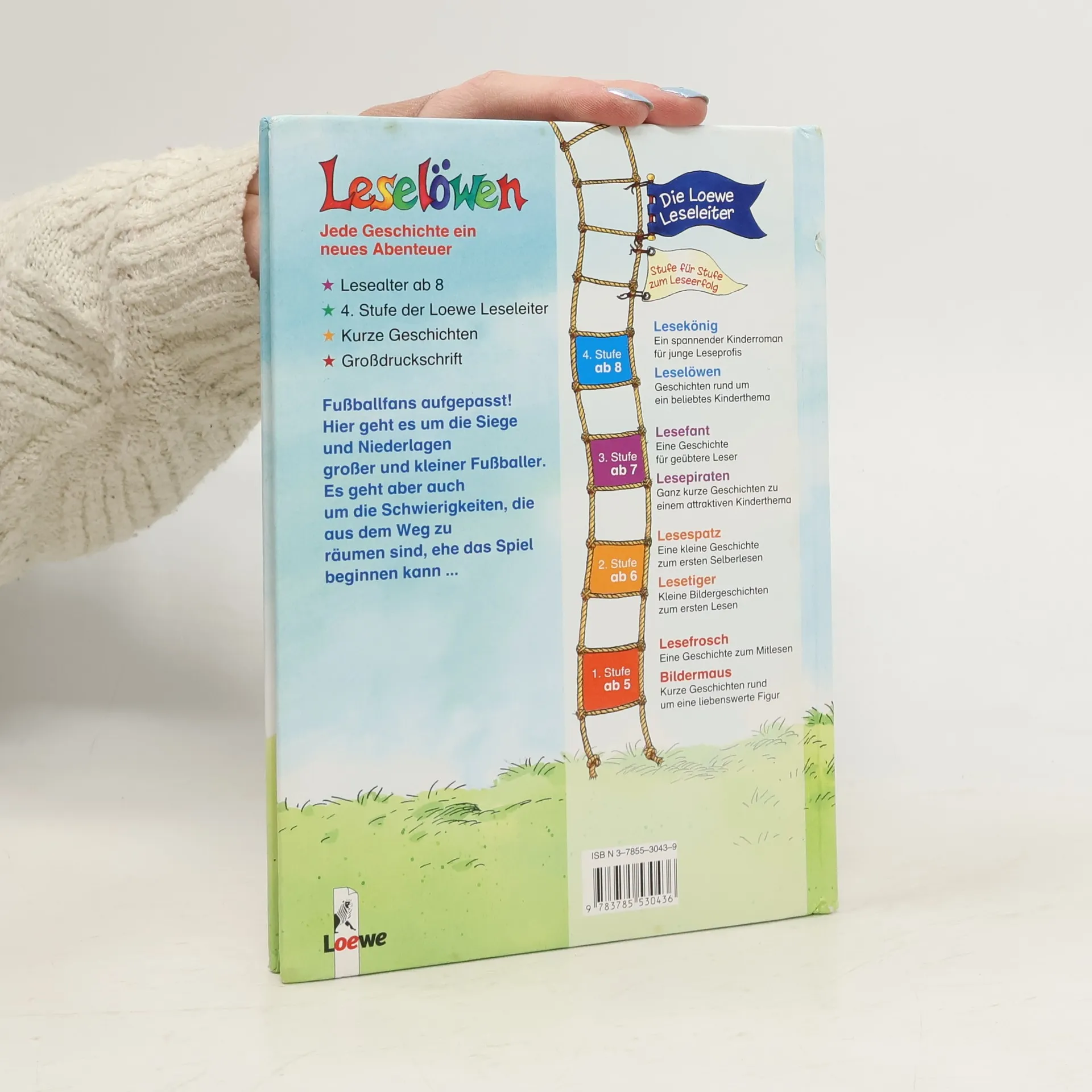Lesealter ab 8 4. Stufe der Loewe-Leseleiter Kurze Geschichten Großdruckschrift Fußballfans aufgepasst! Hier geht es um die Siege und Niederlagen großer und kleiner Fußballer. Es geht aber auch um die Schwierigkeiten, die aus dem Weg zu räumen sind, ehe das Spiel beginnen kann.