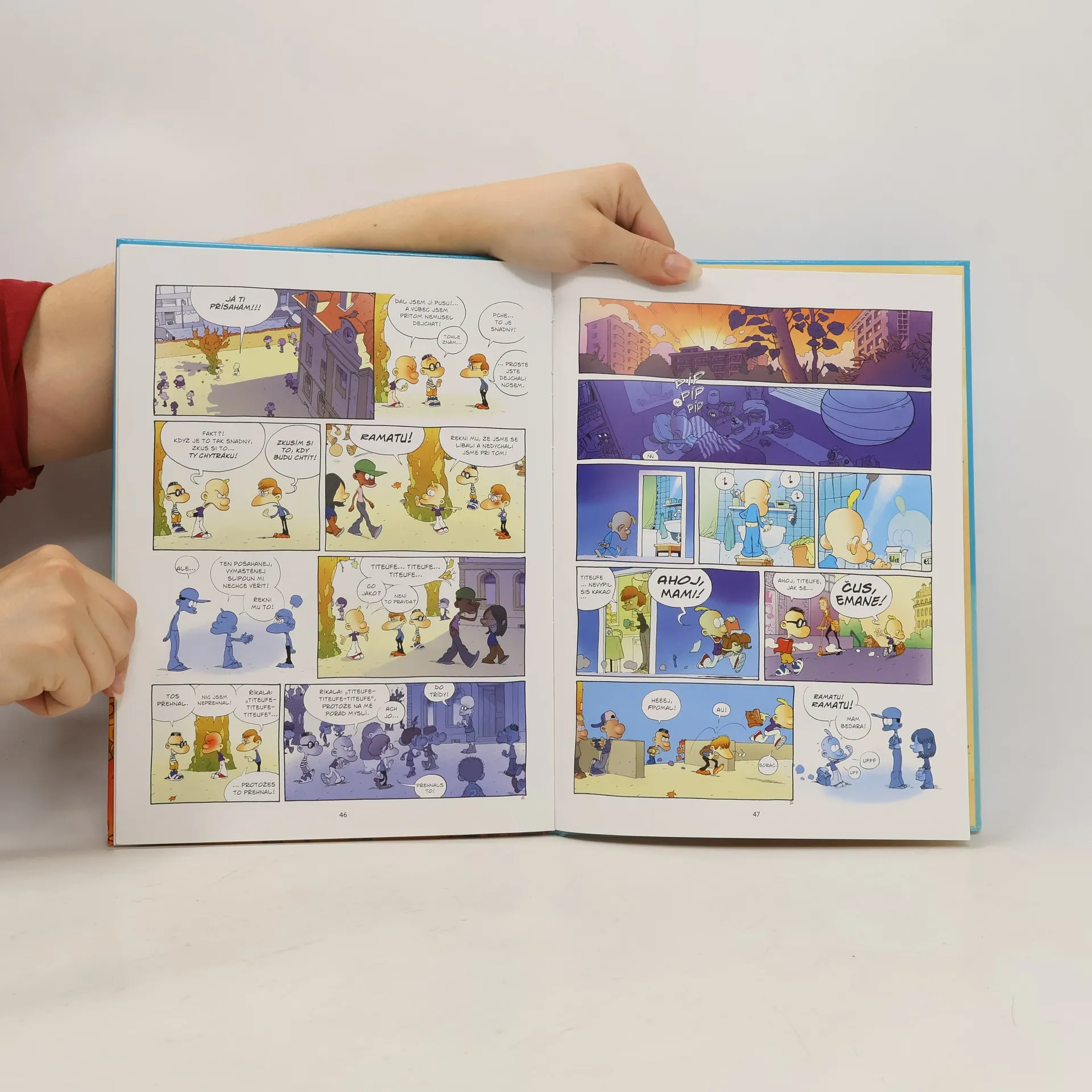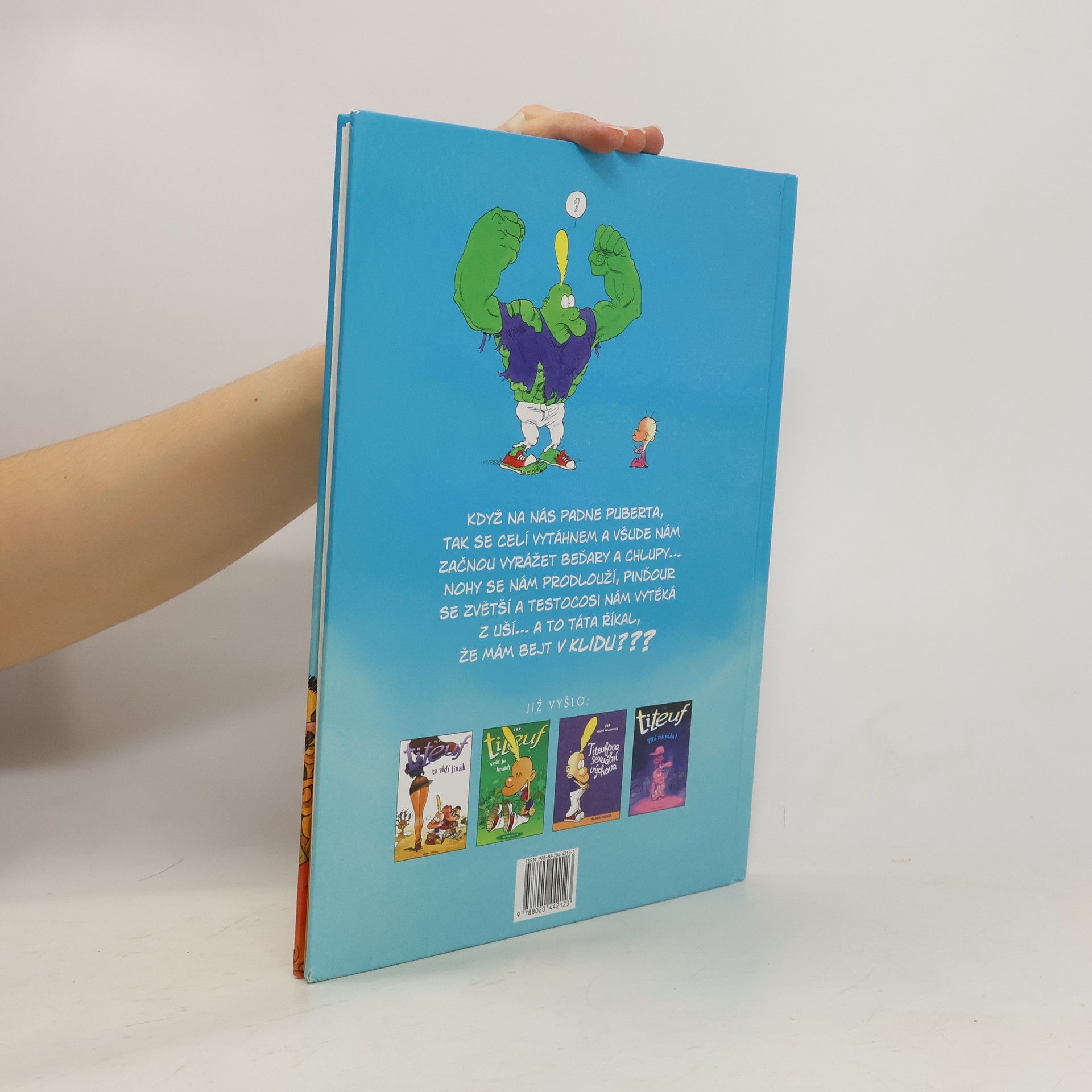 Když na nás padne puberta, tak se celí vytáhnem a všude nám začnou vyrážet beďary a chlupy… Nohy se nám prodlouží, pinďour se zvětší a testocosi nám vytéká z uší… A to táta říkal, že mám bejt v klidu? Titeufovi se život převrátil vzhůru nohama! Zatímco ho dosud holky akorát fackovaly, teď si musí vybrat hned ze dvou nápadnic: Naďa, nebo Ramatu? Z toho by se jeden zcvoknul! Ale co kdyby… měl obě milenky na půlúvazek? Vždyť i Františkův táta má dvě zaměstnání. Jenže takové řešení může napadnout jen kluky. Je na čase trochu vyrůst, posunout se někam dál… do toho zvláštního období puberty, kdy začínáme líbat dívky na ústa. Dokonce i tělo se nám proměňuje… Jenže puberťákem se nestaneme na povel. Jednoho dne do ní prostě padneme až po čupřinu! A nejde to nějak urychlit? Nejsou na to tabletky?