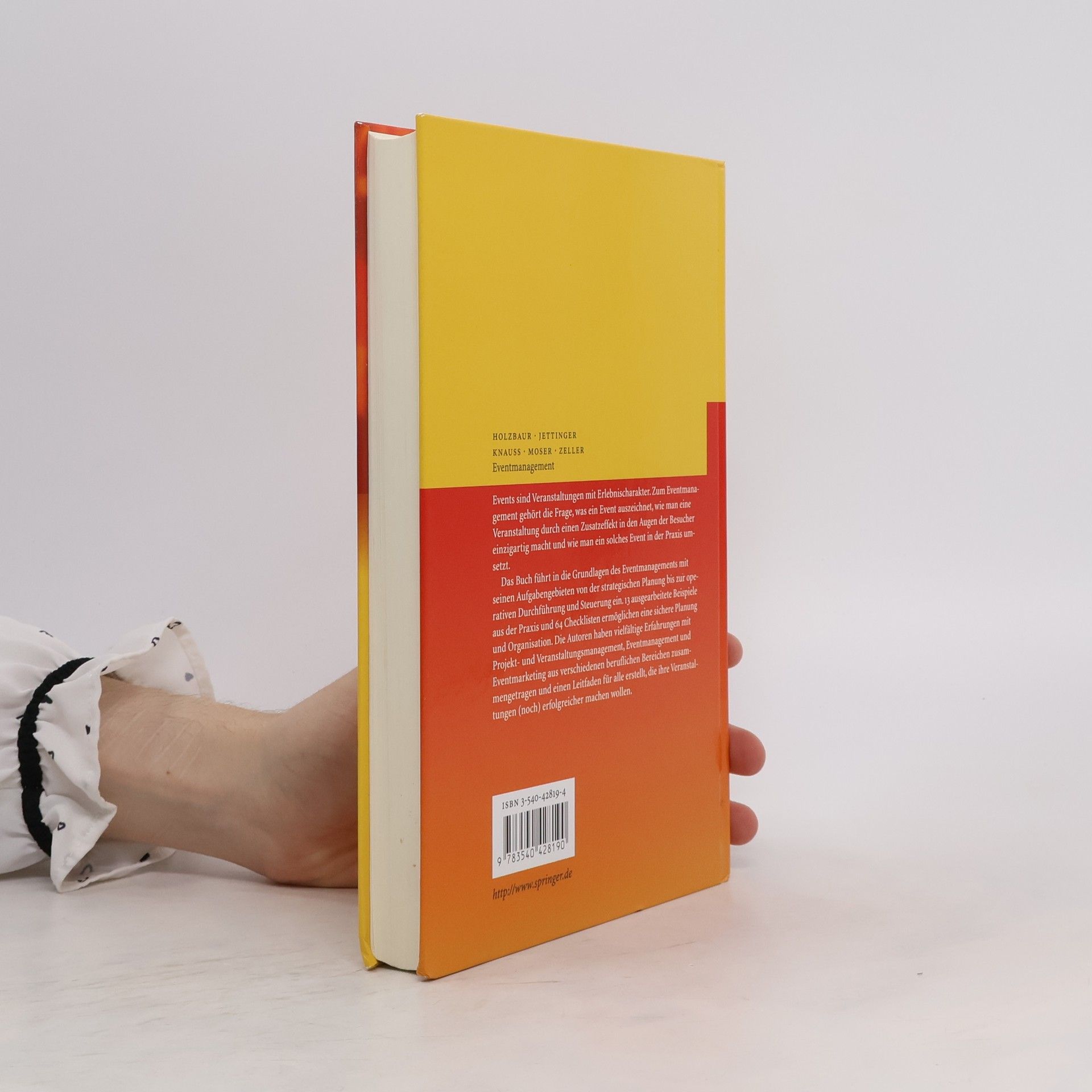 Events sind Veranstaltungen mit Erlebnischarakter. Zum Eventmanagement gehört die Frage, was ein Event auszeichnet, wie man eine Veranstaltung durch einen Zusatzeffekt in den Augen der Besucher einzigartig macht und wie man ein solches Event in der Praxis umsetzt. Das Buch führt in die Grundlagen des Eventmanagements mit seinen Aufgabengebieten von der strategischen Planung bis zur operativen Durchführung und Steuerung ein. 13 ausgearbeitete Beispiele aus der Praxis und 64 Checklisten ermöglichen eine sichere Planung und Organisation. Die Autoren haben vielfältige Erfahrungen mit Projekt- und Veranstaltungsmanagement, Eventmanagement und Eventmarketing aus verschiedenen beruflichen Bereichen zusammengetragen und einen Leitfaden für alle erstellt, die ihre Veranstaltungen (noch) erfolgreicher machen wollen.
