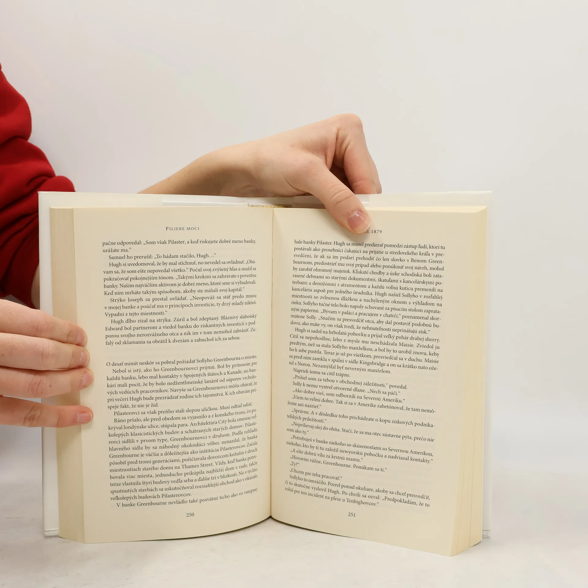 V polovici 19. storočia sú jednou z najvýznamnejších bankárskych rodín v Londýne Pilasterovci. Členovia rozvetvenej rodiny tvrdo presadzujú svoje osobné záujmy, chamtivosť a zhýralosť niektorých z nich nepozná hranice. Vzájomná nedôvera a nenávisť sa podpíše pod krach banky, ktorú zachraňuje najtalentovanejší, ale zároveň najzraniteľnejší Hugh Pilaster. Jeho otec totiž spáchal samovraždu, a to ohrozuje synovu skvelú budúcnosť. Obsiahly román nás zavedie do pánskych klubov aj nevestincov, kde si bohatá smotánka uspokojuje svoje temné túžby. Oslňujúce plesové sály a komnaty obložené mahagónom sú svedkami intríg, ktoré spriadajú manipulátori s bohatstvom sveta. Všetko sa začalo v roku 1866, keď v exkluzívnej chlapčenskej škole došlo k tragédii. Pri záhadnom nešťastí sa utopil mladý človek a jeho smrť poznačila osudy Follettových hrdinov na celé desaťročia. Rovnako ako Piliere zeme, aj Piliere moci sú vzrušujúcim príbehom plným politických a ľúbostných intríg, nechýba ani chladnokrvná vražda a finančná kríza. Ďalšia historická kniha z pera Kena Folletta, od ktorej sa nebudete vedieť odtrhnúť.