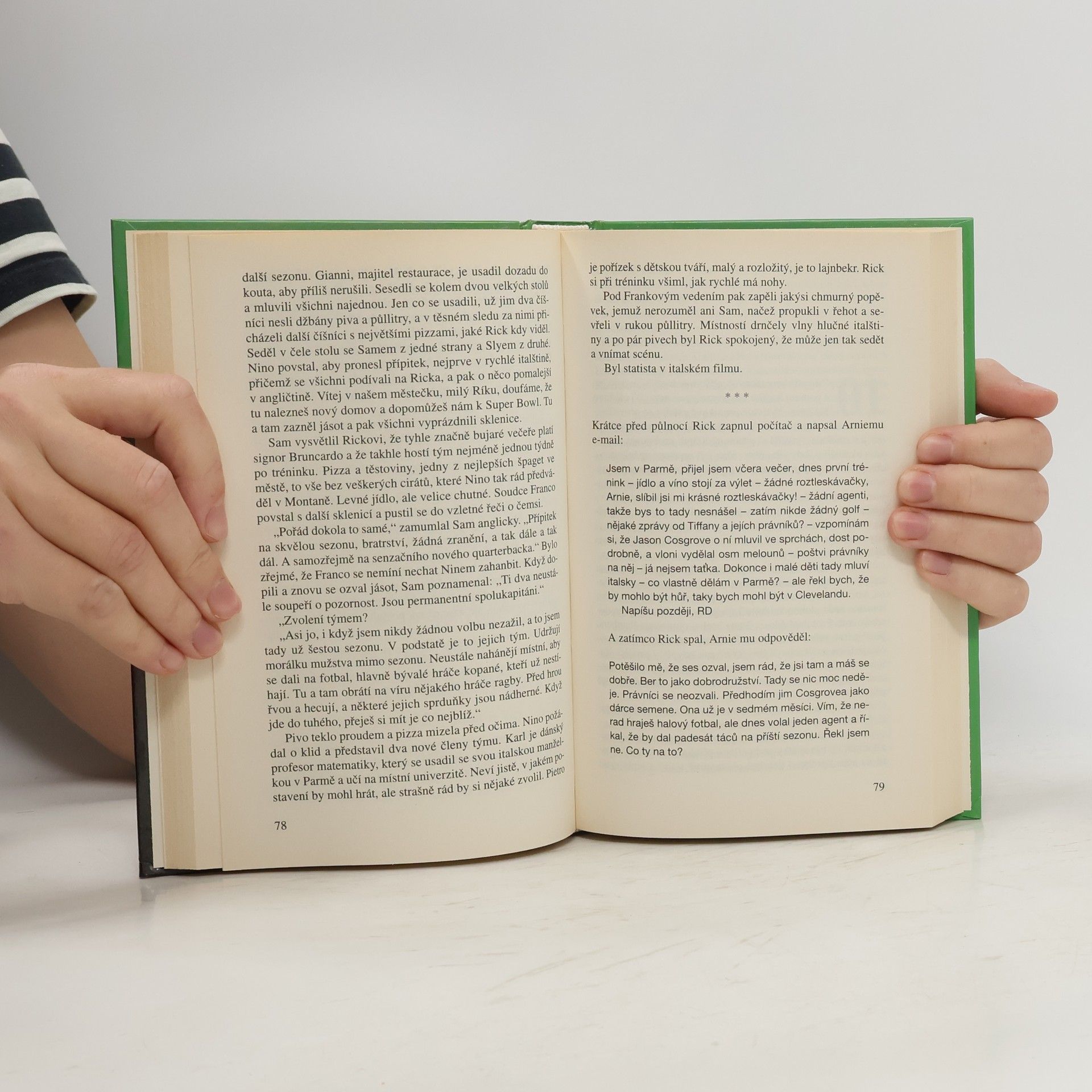 V další ze svých kratších próz situovaných mimo právnické prostředí nás John Grisham po Trenérovi opět zavádí do zákulisí svého oblíbeného sportu – amerického fotbalu. Rick Dockery, druhý záložní quarterback Cleveland Browns, zaviní prohru svého týmu v zápasu o titul mistra americké ligy a je okamžitě propuštěn. Jeho agent marně pátrá po týmu, který by byl po tomto fiasku ochoten Ricka angažovat. Nakonec uspěje, ale má to háček – zájemce se ozval z Evropy, konkrétně z italské Parmy. Rick, Američan zvyklý na velká auta, golfová hřiště a floridské podnebí, se tak ocitá poprvé na starém kontinentu, v zemi pyšnící se historií, krásnými ženami a vynikajícím jídlem, v týmu parmských Panterů, amatérů odhodlaných porazit odvěkého rivala – bergamské Lions – a vybojovat se svou novou hvězdou poprvé titul domácího šampiona. Svižný a humorným stylem podaný příběh nepochybně potěší jak Grishamovy fanoušky, tak příznivce amerického fotbalu a v neposlední řadě milovníky Itálie se vším, co k ní patří.