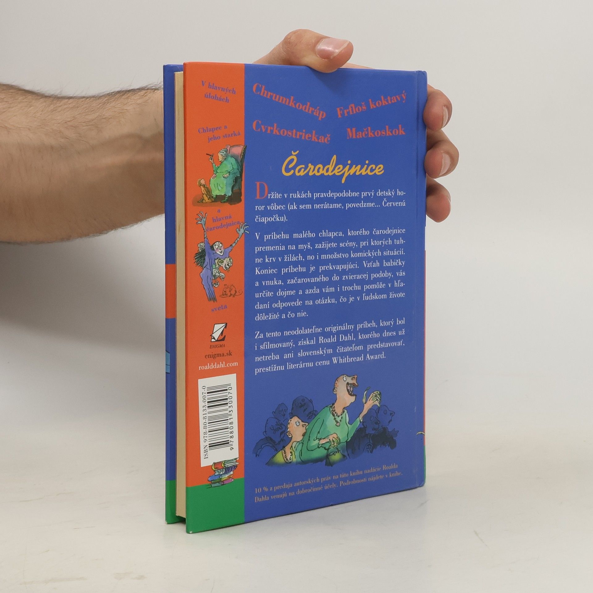Toto je pravdepodobne prvý "detský horor" vôbec (ak sem nerátame, povedzme... Červenú čiapočku). V príbehu malého chlapca, ktorého čarodejnice premenia na myš, zažijete scény, pri ktorých tuhne krv v žilách, no i množstvo komických situácií. Koniec príbehu je prekvapujúci. Vzťah babičky a vnuka, začarovaného do zvieracej podoby, vás určite dojme a azda vám i trochu pomôže v hľadaní odpovede na otázku, čo je v ľudskom živote dôležité a čo nie. Za tento neodolateľne originálny príbeh, ktorý bol i sfilmovaný, získal Roald Dahl, ktorého dnes už netreba ani slovenským čitateľom predstavovať, prestížnu literárnu cenu Whitbread Award.