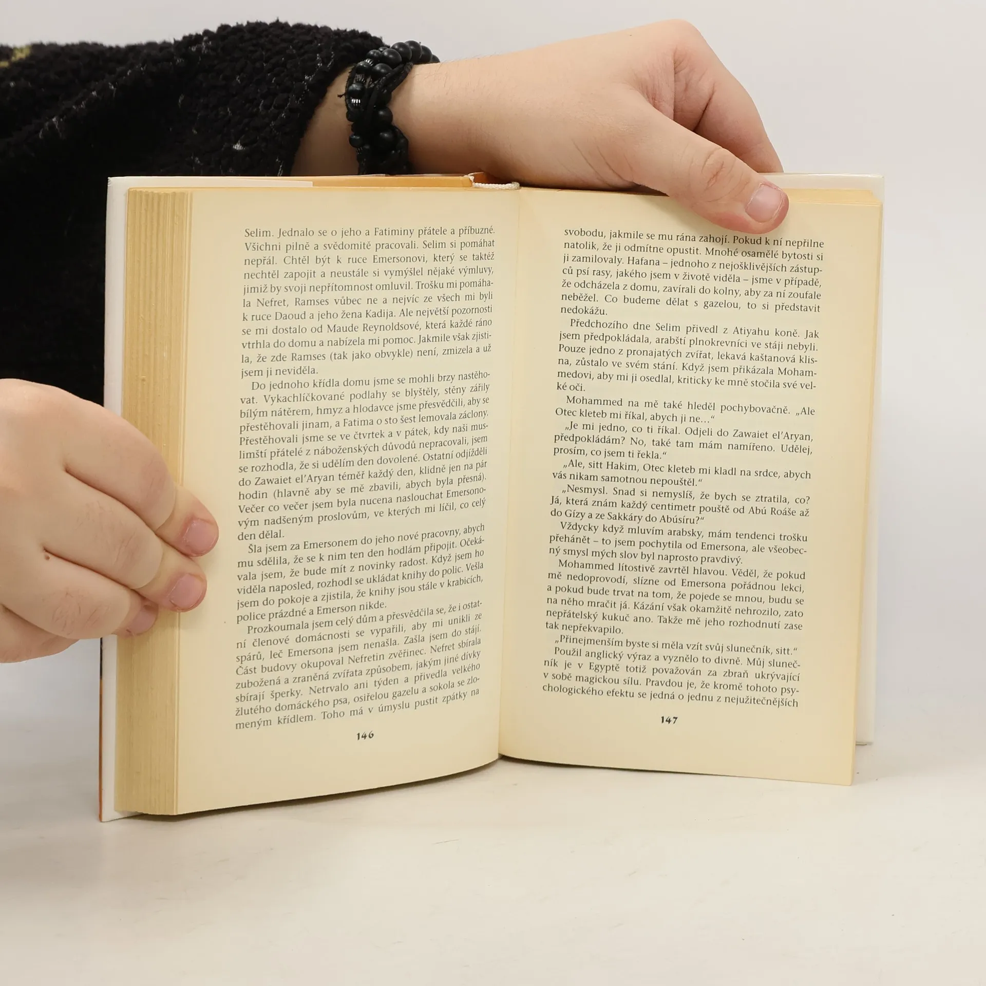 Ve čtvrtém díle série detektivních příběhů pátrá rodina anglického archeologa po totožnosti padělatele starověkých památek. Uznávaný egyptolog Radcliffe Emerson, jeho emancipovaná manželka a spolupracovnice Amelie, syn Ramses, vynikající znalec staroegyptštiny, i nevlastní dcera Nefret, studentka medicíny, opouštějí ke konci roku 1911 svůj dům v Kentu a opět se vracejí do Afriky. Tentokrát je však nepřivádí jen profesionální zájem o archeologický výzkum pyramid, ale i snaha zbavit podezření Ramsesova přítele Davida Todrose, egyptského archeologa a talentovaného umělce. Bez ohledu na vlastní nebezpečí se pokoušejí mezi svými kolegy odhalit muže, který se za něj vydává a prodává překupníkům a sběratelům falzifikáty starožitností. Situace se zdramatizuje, když je na dně šachty pyramidy nalezeno mrtvé tělo sestry amerického egyptologa. Detektivní román americké autorky, ve kterém uplatňuje své znalosti oboru, je napsán s humorným nadhledem.