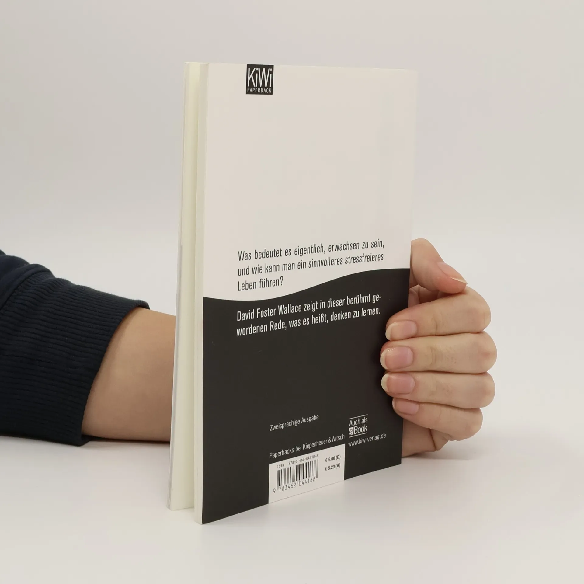 Eine Anstiftung zum Denken David Foster Wallace wurde 2005 darum gebeten, vor Absolventen des Kenyon College eine Abschlussrede zu halten. Diese berühmt gewordene Rede gilt in den USA mittlerweile als Klassiker und Pflichtlektüre für alle Abschlussklassen – eine kleine Anleitung für das Leben, die man jedem Hochschulabsolventen und jedem Jugendlichen mit auf den Weg geben möchte. Was bedeutet es eigentlich, erwachsen zu sein, und wie können Menschen ihre Standardeinstellung, dass sich alles im Leben erst mal um sie selbst dreht, durchbrechen, um ein sinnvolleres und stressfreieres Dasein zu führen? David Foster Wallace zeigt in dieser kurzen Rede mit einfachen Worten, was es heißt, Denken zu lernen und erwachsen zu sein. Eine frappierende Weisheit, eine entwaffnende Moral und ein Aufruf zu mehr Empathie – es wird keinen Leser geben, der sich dem Zauber von Wallace’ Darlegung entziehen kann.