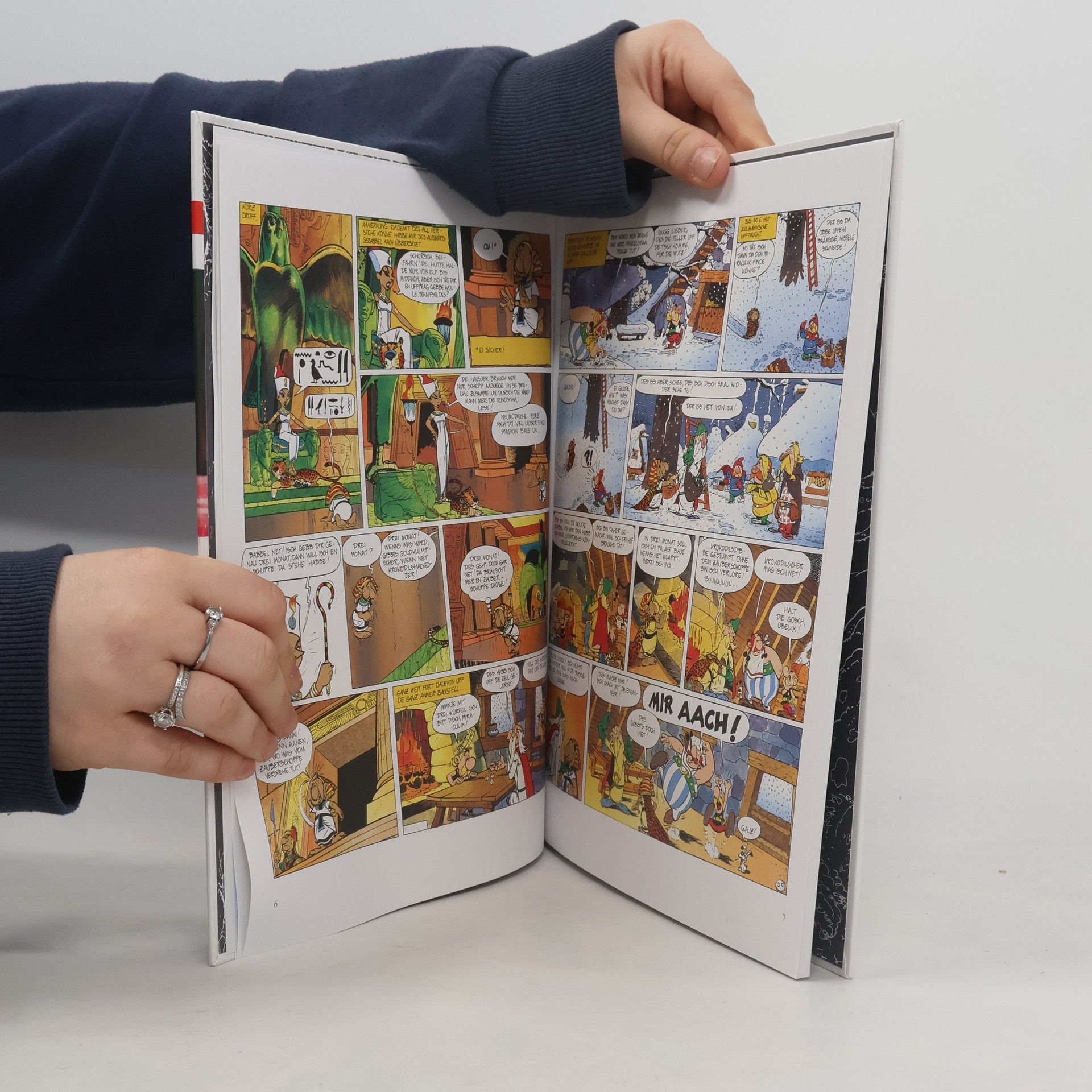 Die beliebte Mundart-Reihe ist der besondere Spaß für Asterix-Fans. Wenn sich der Gallier durch die deutschsprachigen Dialekte von Schleswig bis Südtirol babbelt, schwätzt, schnackt und redt, sorgt das für jede Menge zusätzliche Lacher in den sowieso schon vor Witz sprühenden Geschichten. In diesem Band babbelt selbst Ägypten hessisch – da wird Kleopatra zum Zuckerschnecksche! Das vierte Hessisch-Büchelsche, übertragen von Jürgen Leber.