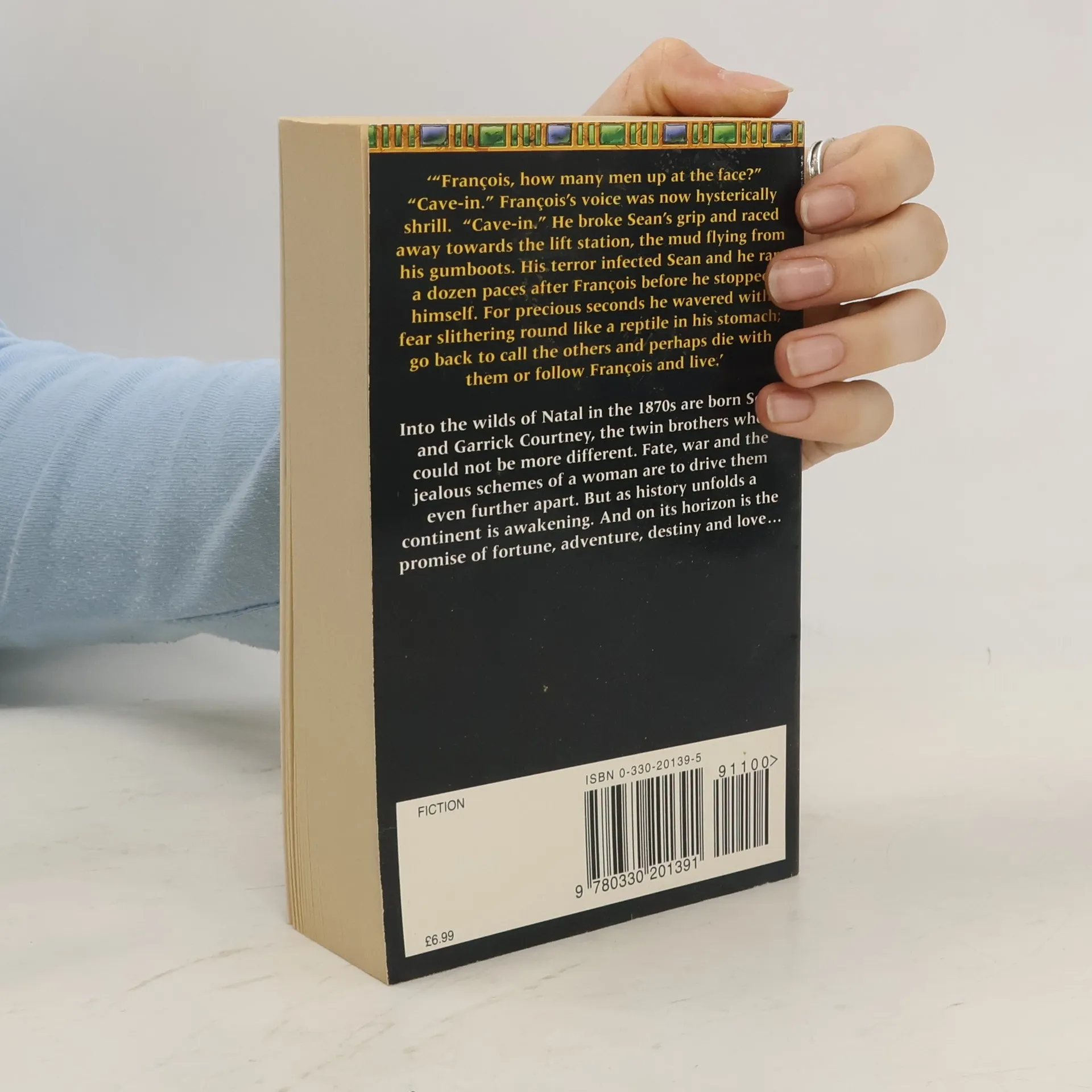 "Sean Courtney was raised in cattle country, and accidently maimed his twin brother Garry as a boy. In inflicting weakness, Sean came to despise weakness in all. This, plus his own strength, was to dictate Sean's iron resolve to win, no matter how much the gamble cost. After a stint fighting the Zulu tribes, Sean trys his luck in the gold fields. Venturing an impossible claim which miraculously proves out, Sean gains wealth beyond counting and power. Power that was unmanageable without cunning. But cunning was an art he was to learn the hard way."