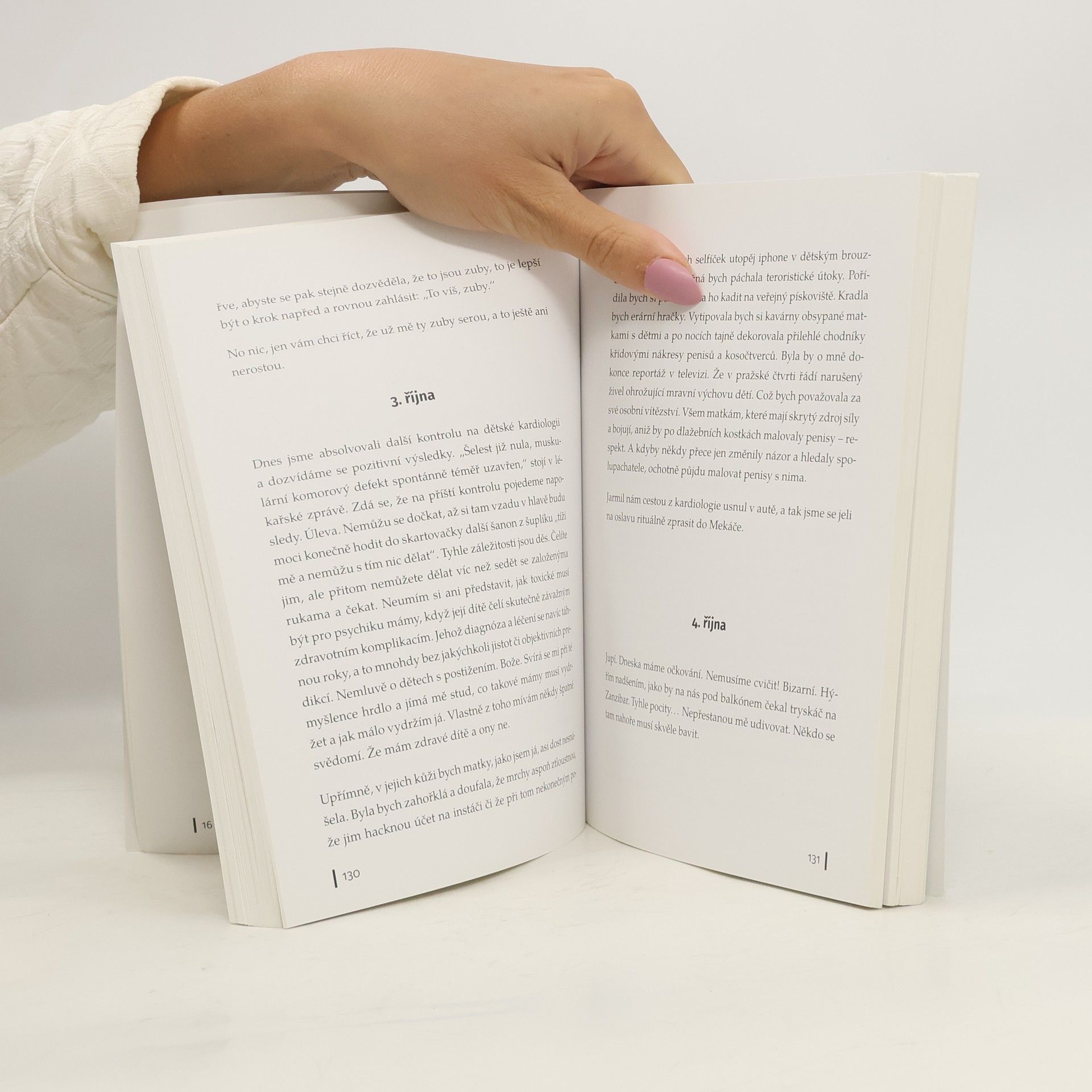 Porodila jsem. Události rázem nabraly nečekaný spád. Bum, prásk, dítě a k němu nepřeberné množství informací. Můj mozek hlásí ihned v prvních hodinách přetížení. Kdo mohl čekat, že toho bude tolik. Je to dítě! Není to urychlovač částic. Vyděsilo mě to. Člověk si maluje pozvolný rozjezd, poetický začátek v opojení lásky a vděčnosti, nové poměry však neposkytují ani poskrovnu prostoru pro asimilaci. A než se stihnete zorientovat, strčí vám do ruky mimino s výrazem „nasávej, uč se a plav“. A tak instinktivně zapnete autopilota a tváříte se, že víte, co děláte. Ač ve skutečnosti nemáte páru, co dělá pravá a co levá, vyhodnocujete situace na základě amatérských domněnek a modlíte se, aby vše klaplo. Stala se ze mě matka. Pro tuto roli jsem se zrodila. Mám vaječníky a tak. Jsem tutově předurčená býti matkou. Ale popravdě, jak bych to tak…Nemám do psí díry šajna, co se tady děje!