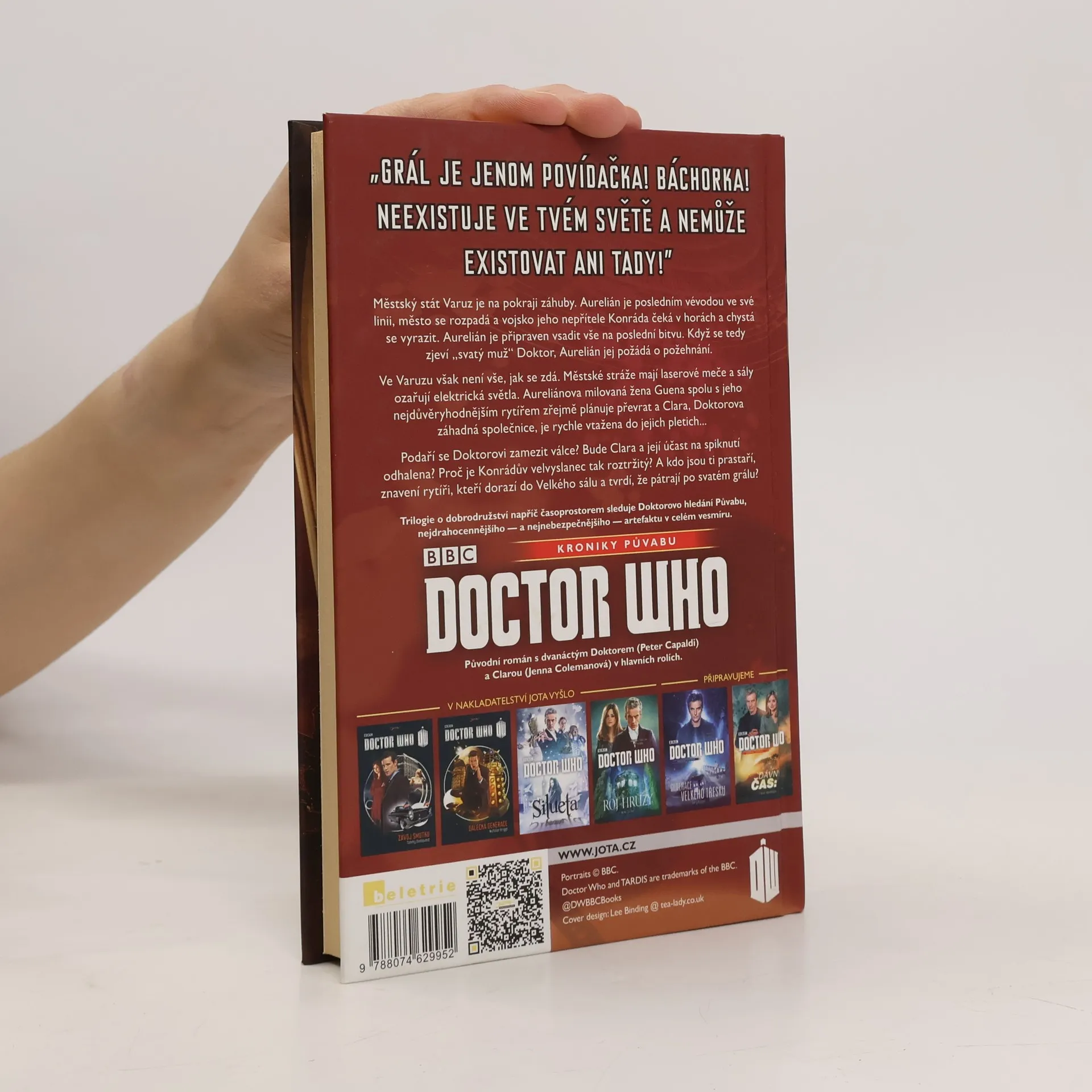 Grál je jenom povídačka! Báchorka! Neexistuje ve tvém světě a nemůže existovat ani tady! Městský stát Varuz je na pokraji záhuby. Aurelián je posledním vévodou ve své linii, město se rozpadá a vojsko jeho nepřítele Konráda čeká v horách a chystá se vyrazit. Aurelián je připraven vsadit vše v jediné poslední bitvě. Když se tedy zjeví svatý muž „Doktor“, Aurelián jej požádá o požehnání. Ve Varuzu však není vše, jak se zdá. Městské stráže mají laserové meče a síně ozařují elektrická světla. Aureliánova milovaná žena Guena, spolu s jeho nejdůvěryhodnějším rytířem, zřejmě plánují převrat a Clara je rychle vtažena do jejich pletich... Podaří se Doktorovi zamezit válce? Bude Clara a její účast na spiknutí odhalena? Proč je Konrádův velvyslanec tak roztržitý? A kdo jsou ti prastaří, znavení rytíři, kteří dorazí do Veliké síně a tvrdí, že pátrají po Svatém grálu? "