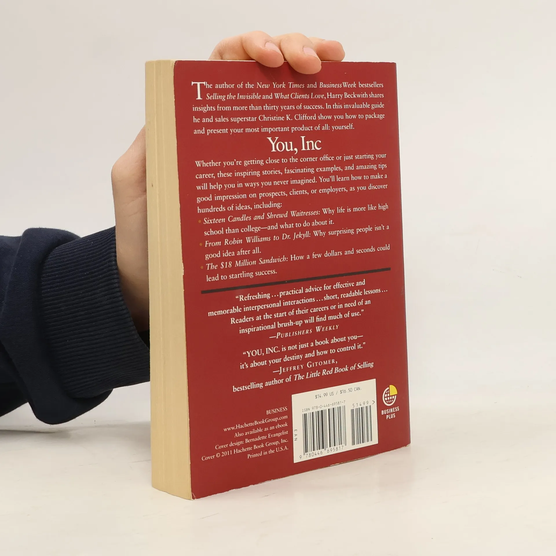 As founder of Beckwith Advertising and Marketing, Harry Beckwith learned early on in his career that no matter what product is being sold, the most important component of the sale is you. And in YOU, INC. Beckwith teams up with Christine Clifford (motivational speaker and former top sales executive) and they expand on this fundamental premise of selling, providing wonderful tidbits, anecdotes, and advice through his well-known home-spun writing style. The authors offer doses of humor and practical knowledge to anyone who wants to learn how to "seal the deal" and thrive in business.