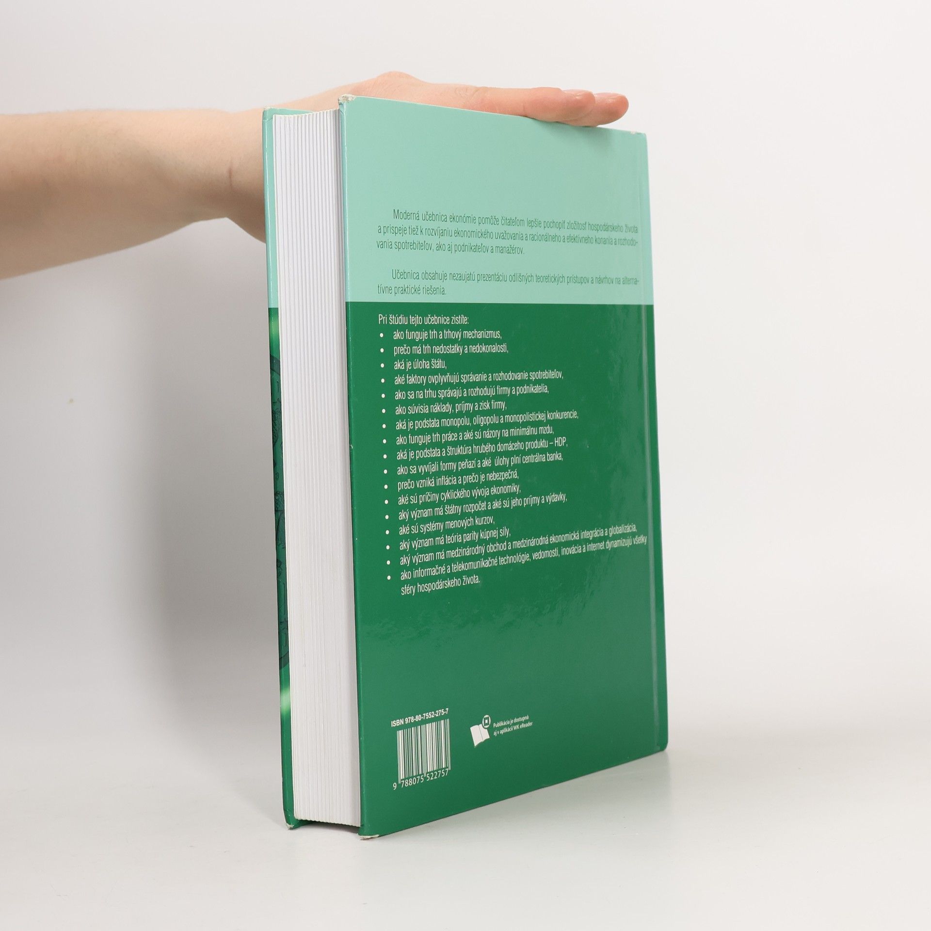 Autori sa v publikácii zaoberajú najdôležitejšími otázkami mikroekonómie, makroekonómie a medzinárodných ekonomických vzťahov. Ponúkajú vyváženú, nezaujatú prezentáciu odlišných teoretických prístupov a návrhov na praktické riešenia, pričom vyžívajú poznatky hlavného prúdu ekonómie a zároveň konfrontujú polemické, a často protirečivé názory jednotlivých smerov tohto prúdu. Nepresadzujú jednostranne význam dlhodobých, resp. krátkodobých tendencií a prístupov, ale práve naopak, predkladajú vyvážený pohľad na krátkodobé a dlhodobé aspekty ekonomického vývoja, ako aj na pestrý okruh protichodných názorov.