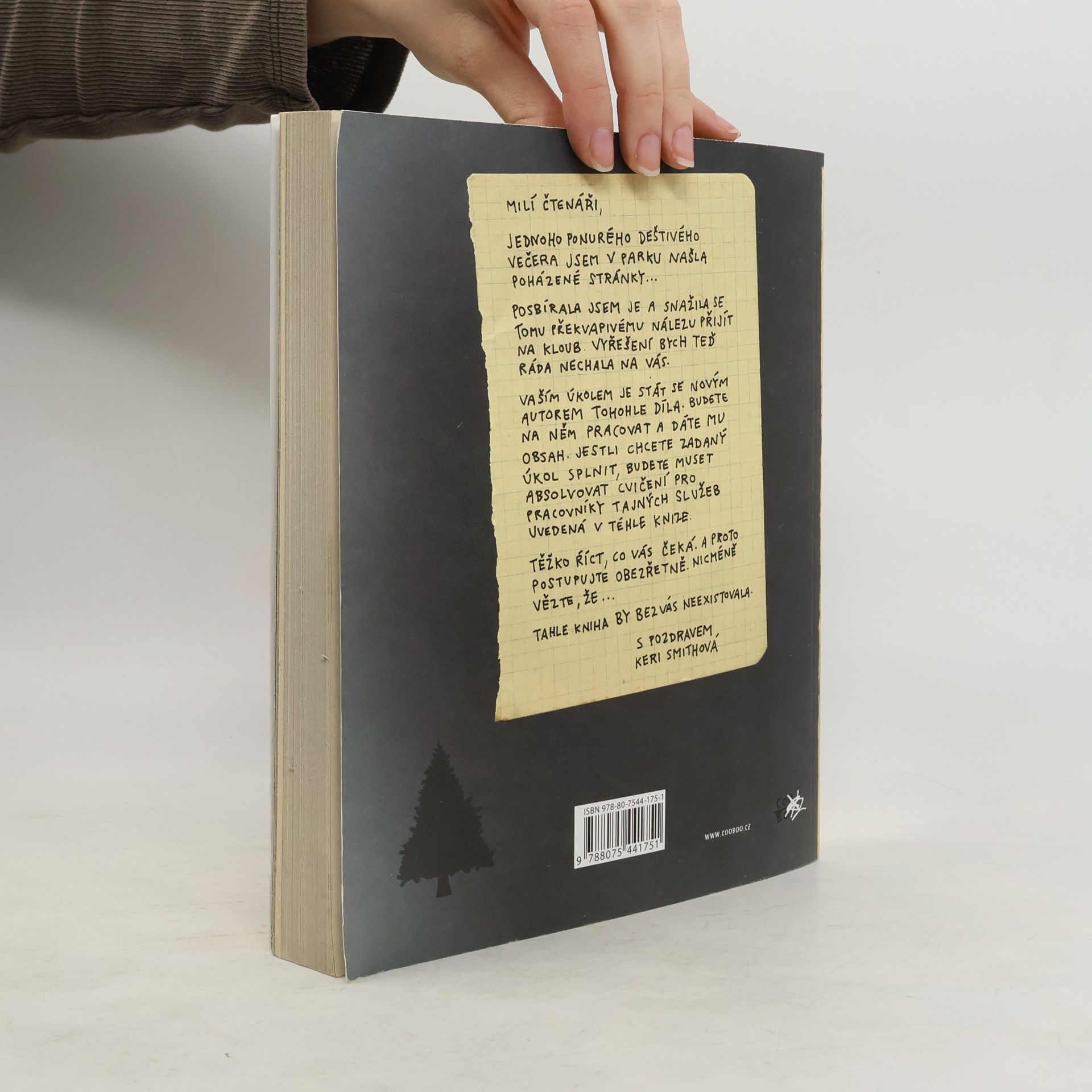 Zbrusu nová knížka od autorky Destrukčního deníku, kterou si můžete sami dodělat a dotáhnout do konce! Milí čtenáři, jedné temné a bouřlivé noci našla Keri Smithová v parku několik podivně rozházených papírů. Posbírala je a seřadila a pokusila se vyřešit záhadu, která na ni nečekaně vyskočila. A teď ten úkol předává vám, svým čtenářům. Vaší úlohou bude stát se novým autorem tohoto díla. Budete pokračovat ve výzkumu a doplníte obsah. Kvůli tomu budete muset podstoupit určitý výcvik tajných služeb, který najdete v tomto svazku. A protože nikdo netuší, co vás čeká, postupujte prosím obezřetně, ale víte jak… bez vás tahle kniha neexistuje.