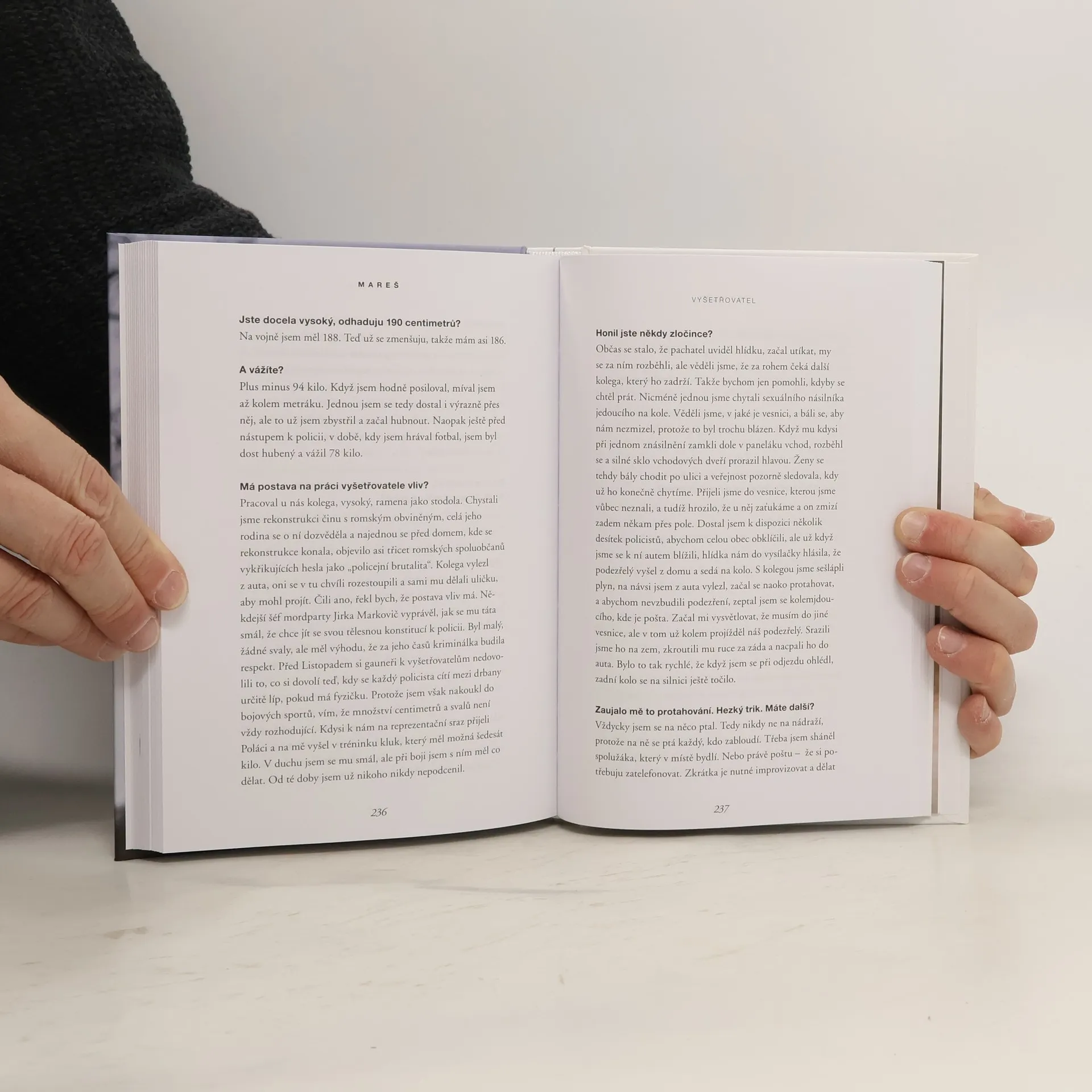 Kniha je vedena formou rozhovorů s Josefem Marešem, který je jedním z nejznámějších českých kriminalistů, bývalým šéfem pražské mordparty a autorem seriálů Devadesátky a Případy 1. oddělení. Mareš vzpomíná na známé případy, jako je vytahování sudů z Orlické přehrady, zmizelá Anička nebo přestřelka, do které byla zapletena mafie. Vypráví také o tom, jak zpracovává zlo, se kterým se při práci setkává, jak probíhá vyšetřování i o jeho vztahu k pachatelům.
