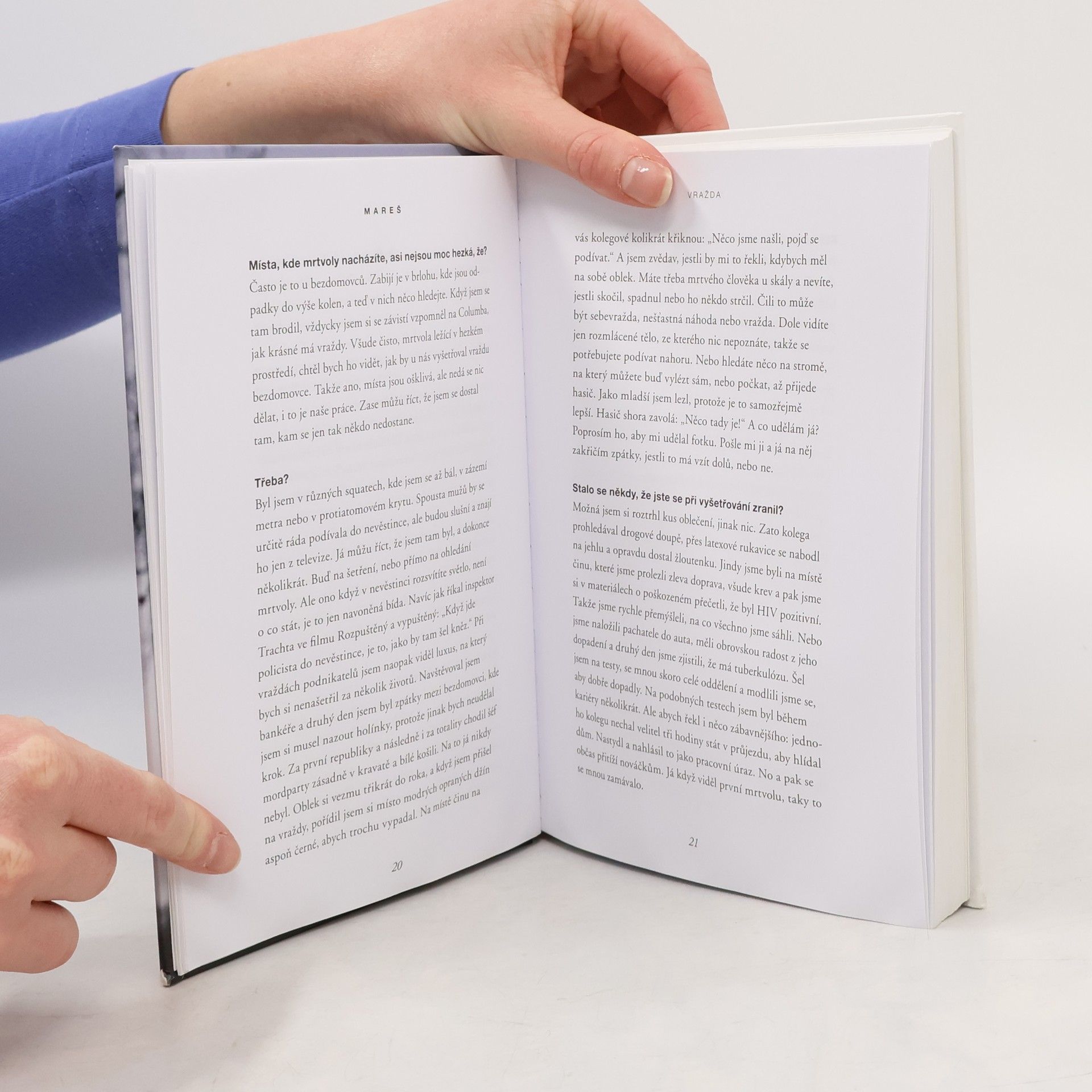 Kniha je vedena formou rozhovorů s Josefem Marešem, který je jedním z nejznámějších českých kriminalistů, bývalým šéfem pražské mordparty a autorem seriálů Devadesátky a Případy 1. oddělení. Mareš vzpomíná na známé případy, jako je vytahování sudů z Orlické přehrady, zmizelá Anička nebo přestřelka, do které byla zapletena mafie. Vypráví také o tom, jak zpracovává zlo, se kterým se při práci setkává, jak probíhá vyšetřování i o jeho vztahu k pachatelům.