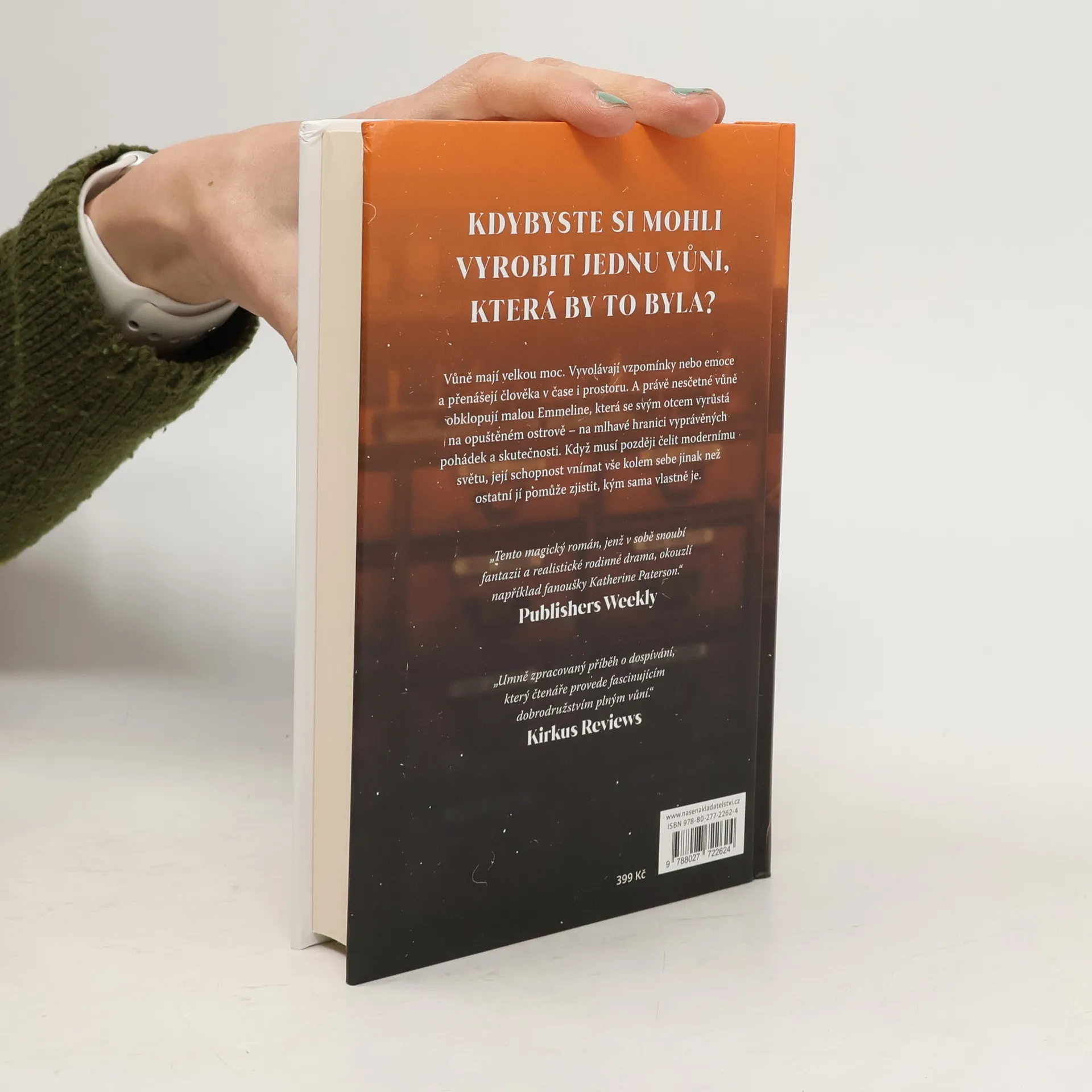 Tajuplný příběh, ve kterém hlavní hrdinka vnímá okolní svět prostřednictvím vůní, snaží se mu porozumět a najít si v něm své místo. Emmeline vyrůstá na osamělém ostrůvku poblíž kanadského pobřeží jen se svým otcem. Tatínek Emmeline vypráví pohádky a učí ji poznávat svět prostřednictvím svých smyslů. Nikdy jí ale nevysvětlí, k čemu vlastně slouží lahvičky uložené do zásuvek, které lemují stěny jejich chaty a ukrývají v sobě kousky voňavého papíru. Čím je však Emmeline starší, tím víc roste její zvědavost, až ji nakonec zavede na cestu, z níž není návratu. Emmeline je nucena ostrov opustit a začlenit se do života v moderním světě, kde pro pohádky ani kouzelné vůně není místo. Zato se tu setká s láskou, zradou, ctižádostí i touhou po pomstě. Nakladatelská anotace. Kráceno.