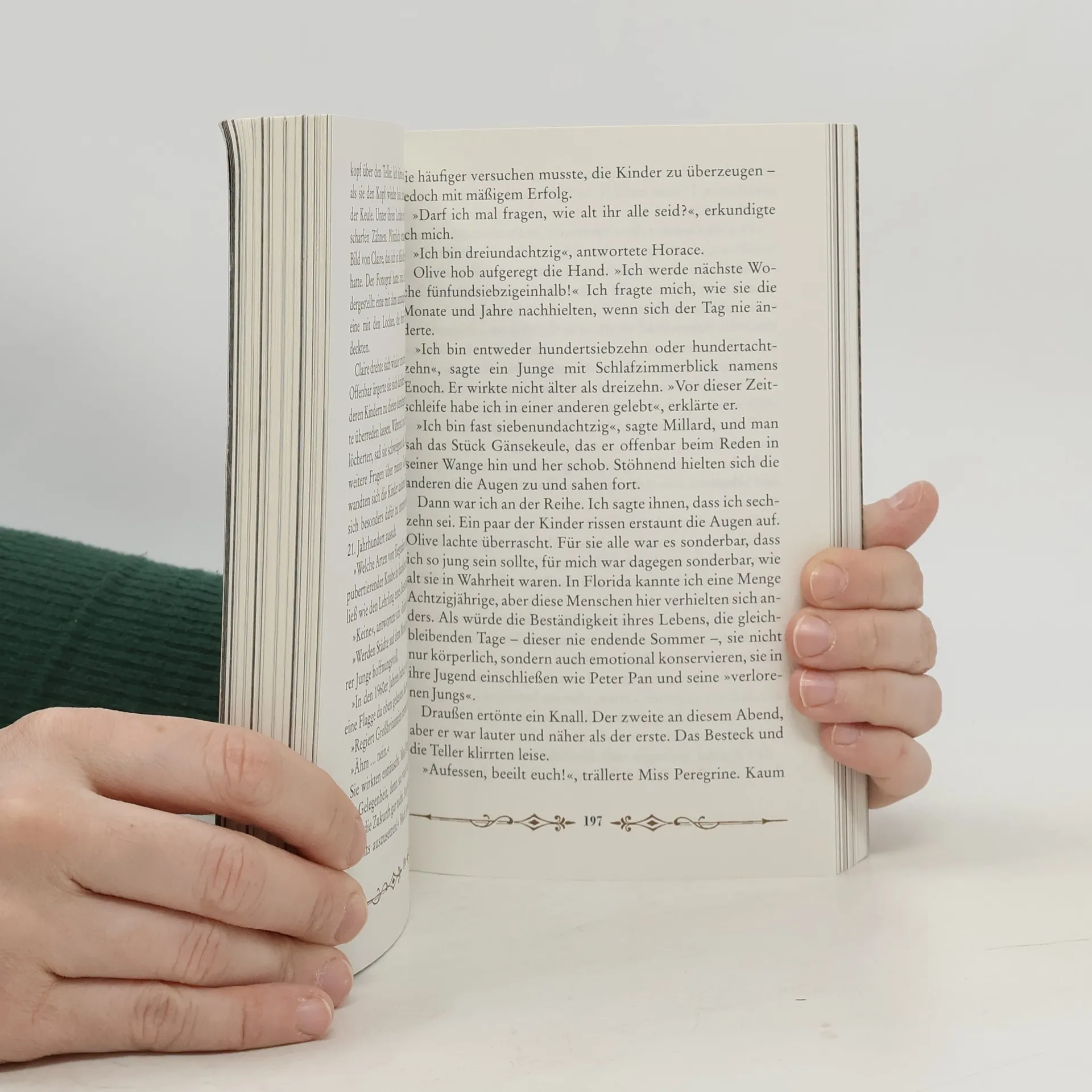 Eine geheimnisvolle Insel, ein verlassenes Waisenhaus und eine Sammlung merkwürdiger Fotografien warten darauf, entdeckt zu werden. In diesem unvergesslichen Roman, der Fiktion mit Vintage-Fotografien verbindet, erlebt der sechzehnjährige Jacob eine außergewöhnliche Reise. Anders als die Märchen, die Großeltern ihren Enkeln erzählen, berichtet sein Opa Abraham von einer Insel, auf der abenteuerlustige Kinder mit besonderen Fähigkeiten leben und von Monstern verfolgt werden. Nach dem mysteriösen Tod seines Großvaters begibt sich Jacob auf die Suche nach der Wahrheit und erreicht eine abgelegene Insel vor der Küste von Wales. Dort entdeckt er eine Welt, in der die Zeit stillsteht und er ungewöhnliche Freundschaften schließt. Doch die Ungeheuer, von denen sein Opa sprach, sind real und verfolgen ihn. Dies ist der erste Band einer erfolgreichen Fantasy-Reihe, die Jacob Portman und die besonderen Kinder begleitet. Die Reihe umfasst insgesamt sechs Bände, die die fantastischen Abenteuer und Geheimnisse dieser einzigartigen Welt weiter erkunden.