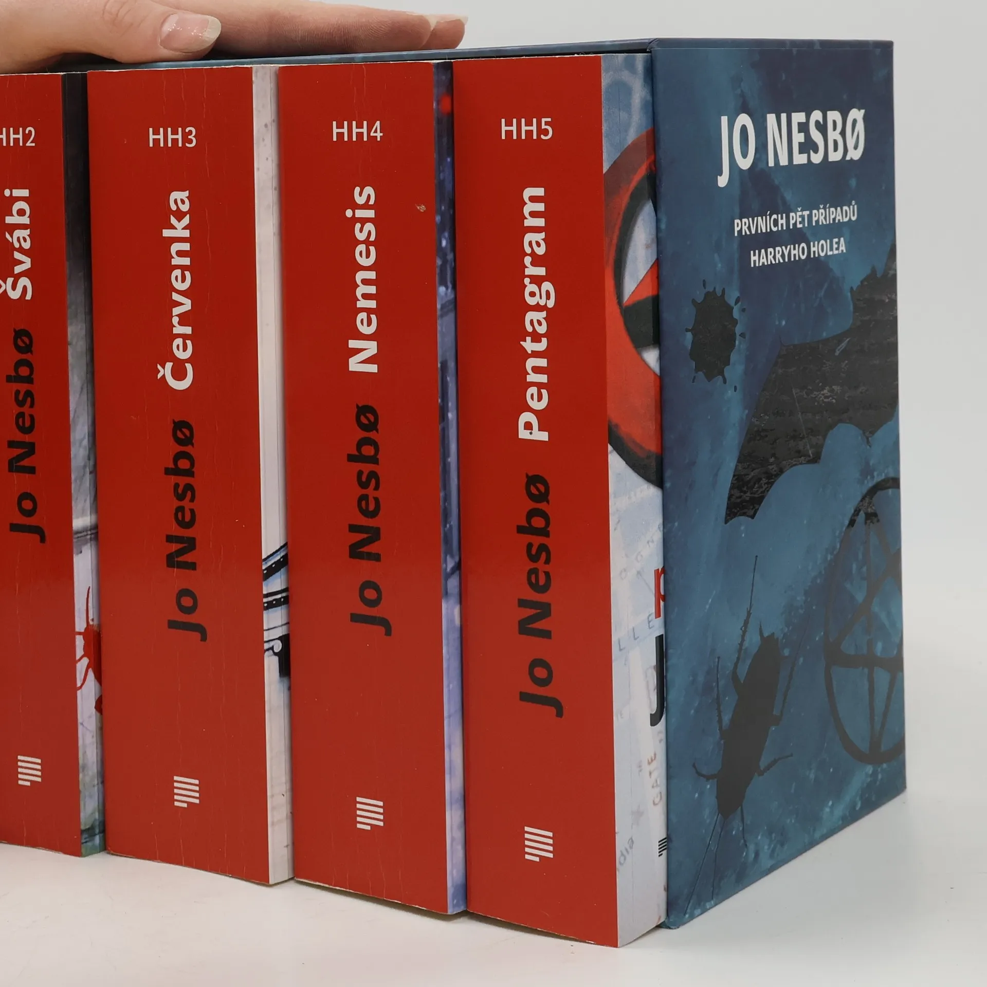 „Prvních pět případů nekompromisního detektiva Harryho Hola za exkluzivní cenu!“ Seznamte se se svérázným detektivem Harrym Holem a ponořte se do fascinujícího světa vyšetřovaní nejneuvěřitelnějších zločinů. Skvělý vypravěč Jo Nesbo čtenáře rozhodně nešetří. Mrazivé napětí, záhadná zmizení, temný zločin, šokující vraždy a nečekané zvraty porcuje snad v každé kapitole všech pěti dílů. Netopýr, Švábi, Červenka, Nemesis a Pentagram se odehrávají nejen ve Skandinávii, ale zavedou čtenáře do exotického Thajska nebo daleké Austrálie.