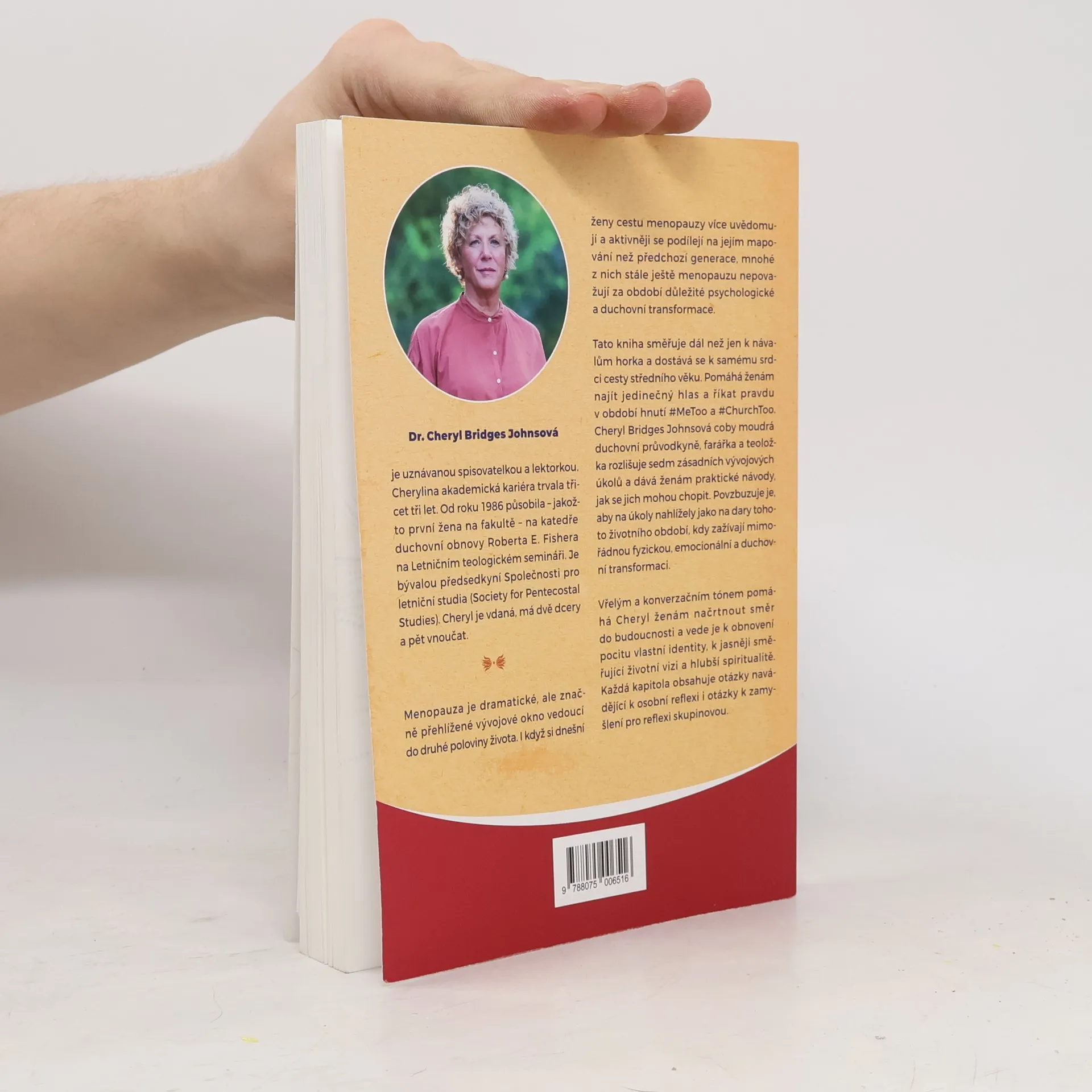 Menopauza je dramatické, ale značně přehlížené vývojové okno vedoucí do druhé poloviny života. I když si dnešní ženy cestu menopauzy více uvědomují a aktivněji se podílejí na jejím mapování než předchozí generace, mnohé z nich stále ještě menopauzu nepovažují za období důležité psychologické a duchovní transformace.Tato kniha směřuje dál než jen k návalům horka a dostává se k samému srdci cesty středního věku. Pomáhá ženám najít jedinečný hlas a říkat pravdu v období hnutí #MeToo a #ChurchToo. Cheryl Bridges Johnsová coby moudrá duchovní průvodkyně, farářka a teoložka rozlišuje sedm zásadních vývojových úkolů a dává ženám praktické návody, jak se jich mohou chopit. Povzbuzuje je, aby na úkoly nahlížely jako na dary tohoto životního období, kdy zažívají mimořádnou fyzickou, emocionální a duchovní transformaci.Vřelým a konverzačním tónem pomáhá Cheryl ženám načrtnout směr do budoucnosti a vede je k obnovení pocitu vlastní identity, k jasněji směřující životní vizi a hlubší spiritualitě. Každá kapitola obsahuje otázky navádějící k osobní reflexi i otázky k zamyšlení pro reflexi skupinovou.