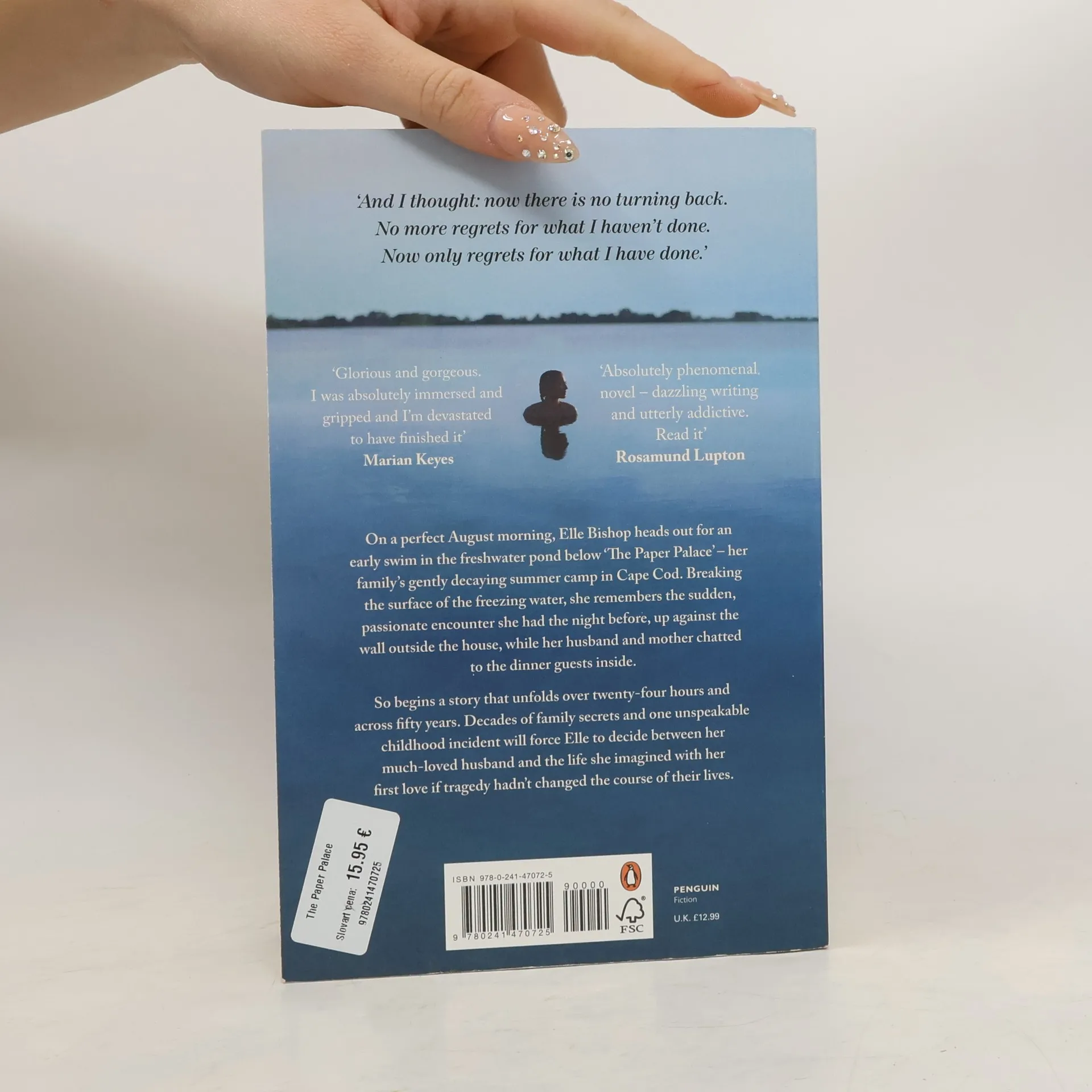 "Before anyone else is awake, on a perfect August morning, Elle Bishop heads out for a swim in the glorious fresh water pond below 'The Paper Palace', the gently decaying summer camp in the back woods of Cape Cod where her family has spent every summer for generations. As she passes the house, Elle glances through the screen porch at the uncleared table from a dinner party the previous evening; empty wine glasses, candle wax on the table cloth, echoes of laughter of family and friends. Then she dives beneath the surface of the freezing water to the shocking memory of the sudden passionate encounter she had the night before, up against the wall outside the house, as her husband and mother chatted to the dinner guests inside. So begins a story that unfolds over 24 hours and across 50 years, as decades of family legacies, love, lies, secrets, and one unspeakable incident in her childhood lead Elle to the precipice of a life-changing decision. Over the next 24 hours, Elle will have to decide between the life she has made with her much-loved husband, Peter, and the life she imagined would be hers with her childhood love, Jonas, if a tragic event hadn't forever changed the course of their lives."