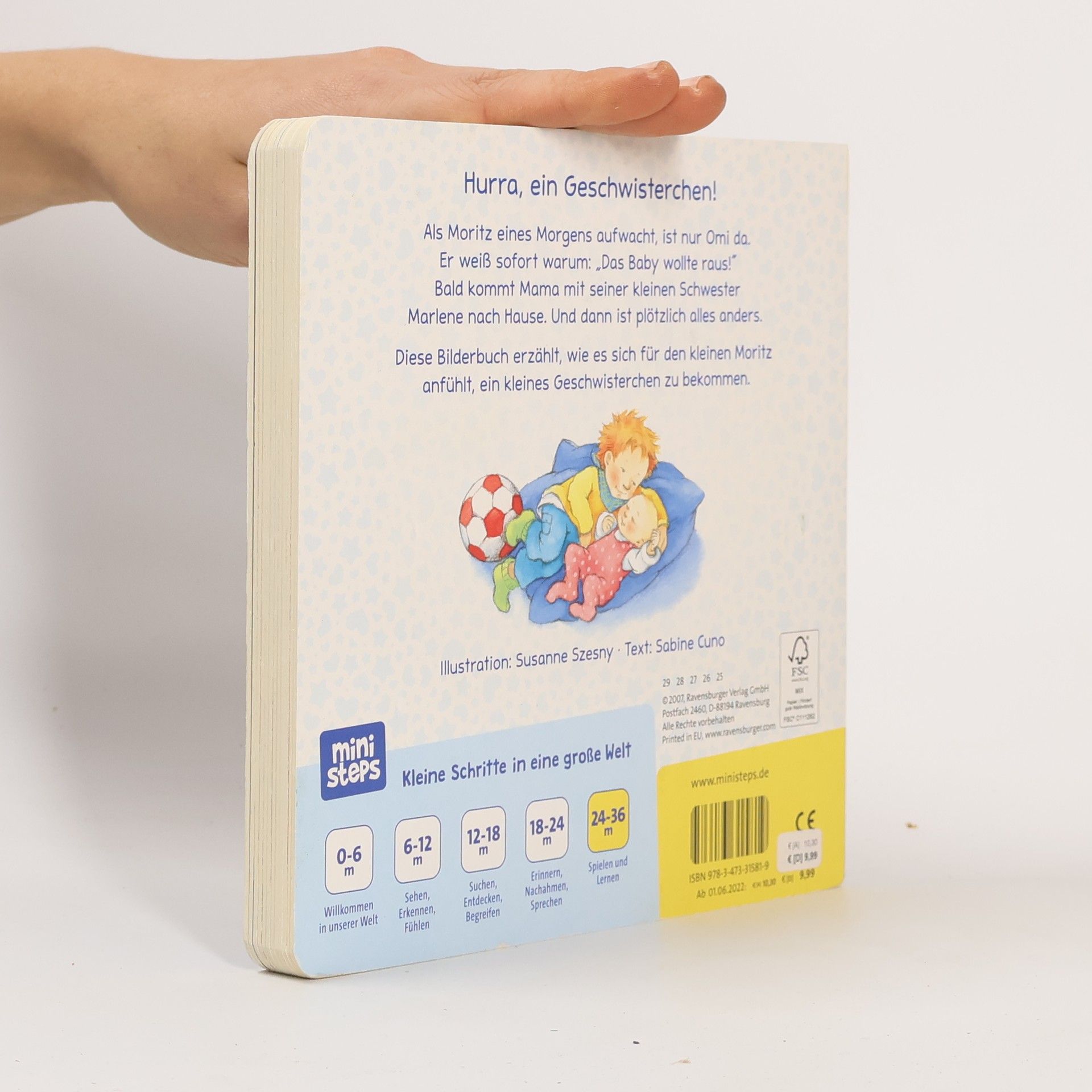 Moritz erwartet bald ein Geschwisterchen, was mit viel Aufregung verbunden ist. Als seine kleine Schwester plötzlich da ist, verändert sich alles. Moritz benötigt einfühlsame Erklärungen, um die neue Situation zu verstehen. Glücklicherweise ist er schon groß genug, um Mama und Papa ein wenig mit dem Baby zu helfen. Für Kleinkinder bringt ein Geschwisterchen eine große Veränderung mit sich. Mamas dicker Babybauch schränkt ihre Aktivitäten ein, und nach der Geburt steht das Baby oft im Mittelpunkt. Moritz hat Schwierigkeiten zu begreifen, warum seine Schwester nicht sofort mit ihm spielen kann und warum Mama weniger Zeit für ihn hat. Doch er kann bereits gut mithelfen und sich um seine Schwester Marlene kümmern. Diese liebevoll erzählte Geschichte hilft Kleinkindern, die bevorstehenden Veränderungen besser zu verstehen und sich auf die aufregende Zeit mit einem Geschwisterchen vorzubereiten. Die kindgerechte Erzählweise und die detailreichen Bilder ermöglichen es den kleinen Lesern, sich in Moritz hineinzuversetzen und seine Gefühle nachzuvollziehen. Dies fördert die Entwicklung des Kindes und unterstützt es dabei, sich an die neue Situation anzupassen. Das Vorlesebuch ist speziell auf die Bedürfnisse von Kleinkindern abgestimmt und wurde von Pädagogen entwickelt, um die Kinder altersgerecht und mit Freude zu fördern.