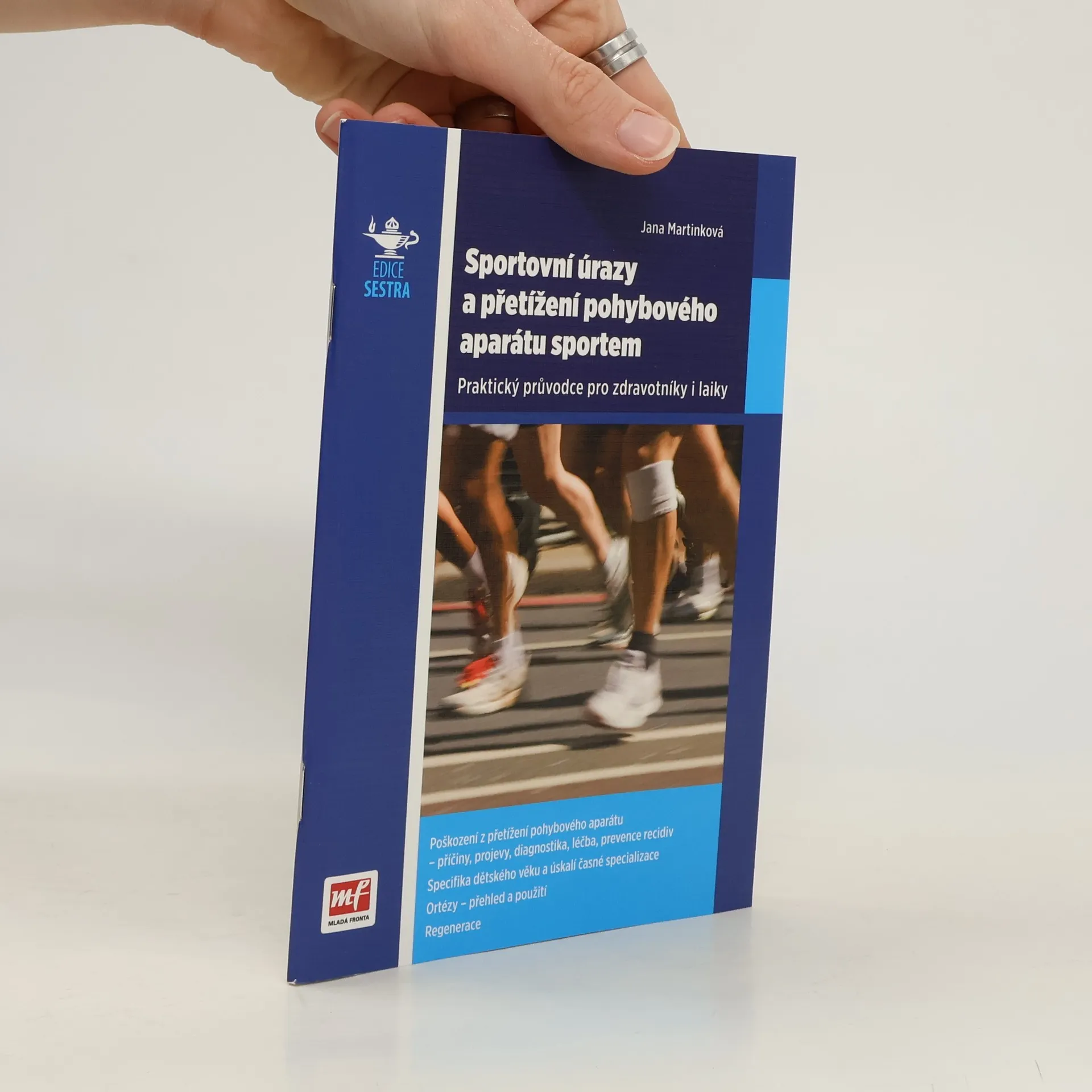 V souvislosti s novými možnostmi zejména v oblasti rekreačního sportu výrazně roste také úrazovost a výskyt bolestivých syndromů z přetížení pohybového aparátu. Sportovci s těmito potížemi vyžadují rychlou pomoc, ovšem řešení obtíží z přetížení nebývá jednoduché a v rámci léčby často dochází k zásadním chybám a omylům. Cílem autorky je proto stručně, srozumitelně a objektivně informovat co nejširší veřejnost o možnostech prevence, příčinách, diagnostice a nejnovějších trendech v léčbě sportovních úrazů. Kapitoly jsou přehledně uspořádány podle jednotlivých segmentů těla a jejich možných poškození. Text dokumentuje řada názorných obrázků - jak anatomických schémat, tak rehabilitačních a kompenzačních pomůcek, ukázek vhodných cvičení a dalších. Zvláštní kapitola je věnována přetížení pohybového aparátu u dětí a problematice časné specializace. V závěru nalezne čtenář také praktické informace o kinesiotapingu či rázové vlně a odkazy na důvěryhodné internetové zdroje.