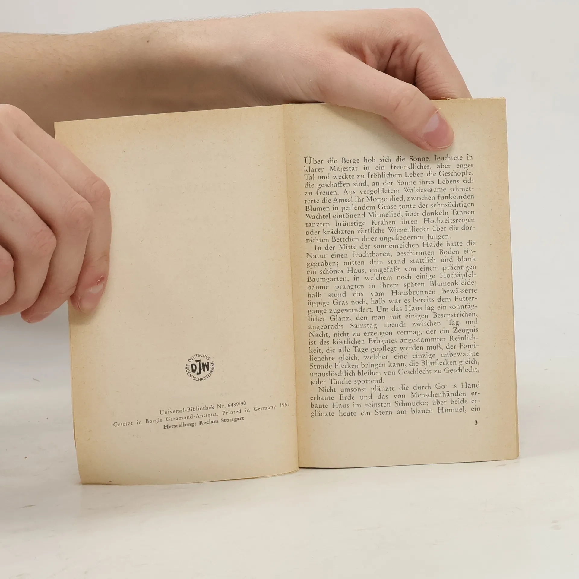 Für seine Hilfe beim Frondienst versprechen Bauern dem Teufel ein ungetauftes Kind. Als sie ihn um seinen Lohn prellen, rächt sich der Teufel mit einer Spinnenplage, der Mensch und Vieh zum Opfer fallen. Eine Mutter findet schliesslich die Kraft, des Unglücks Herr zu werden. Jahrhunderte später bricht die Plage durch Gottlosigkeit jedoch erneut aus. Als Vorlage diente dem Dichter eine Volkssage, von der zwei Varianten in dem Heft gebracht werden. Daten zur Entstehung der Novelle, eine Selbstbiografie des Dichters, sowie ausführliche Anmerkungen runden das Heft ab.
