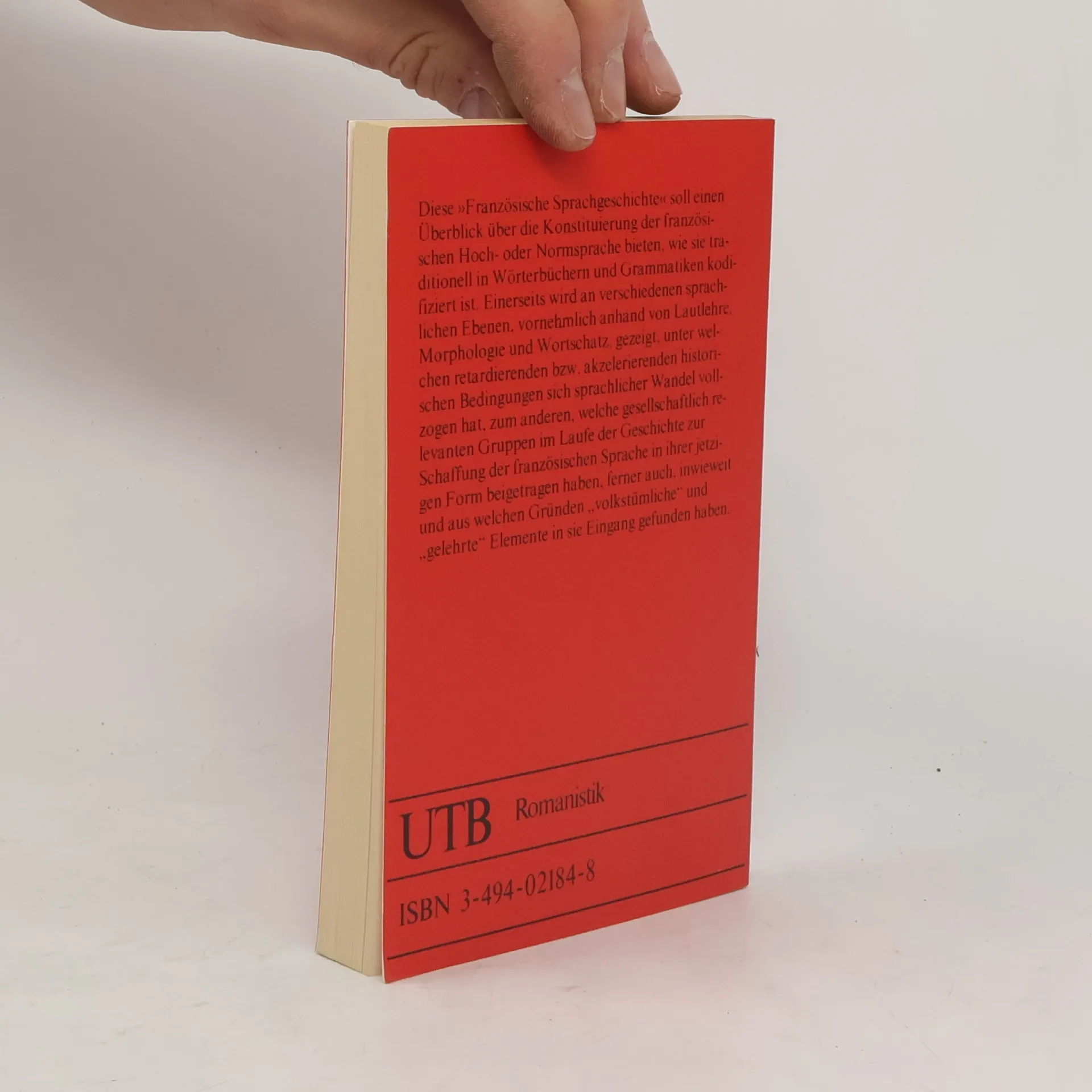 Diese "Französische Sprachgeschichte" soll einen Überblick über die Konstituierung der französischen Hoch- und Normsprache bieten, wie sie traditionell in Wörterbüchern und Grammatiken kodifiziert ist. Einerseits wird an verschiedenen sprachlichen Ebenen, vornehmlich anhand von Lautlehre, Morphologie und Wortschatz, gezeigt, unter welchen retardierenden bzw. akzelerierenden historischen Bedingungen sich sprachlicher Wandel vollzogen hat, zum anderen, welche gesellschaftlich relevanten Gruppen im Laufe der Geschichte zur Schaffung der französischen Sprache in ihrer jetzigen Form beigetragen haben, ferner auch, inwieweit und aus welchen Gründen "volkstümliche" und "gelehrte" Elemente in sie Eingang gefunden haben.