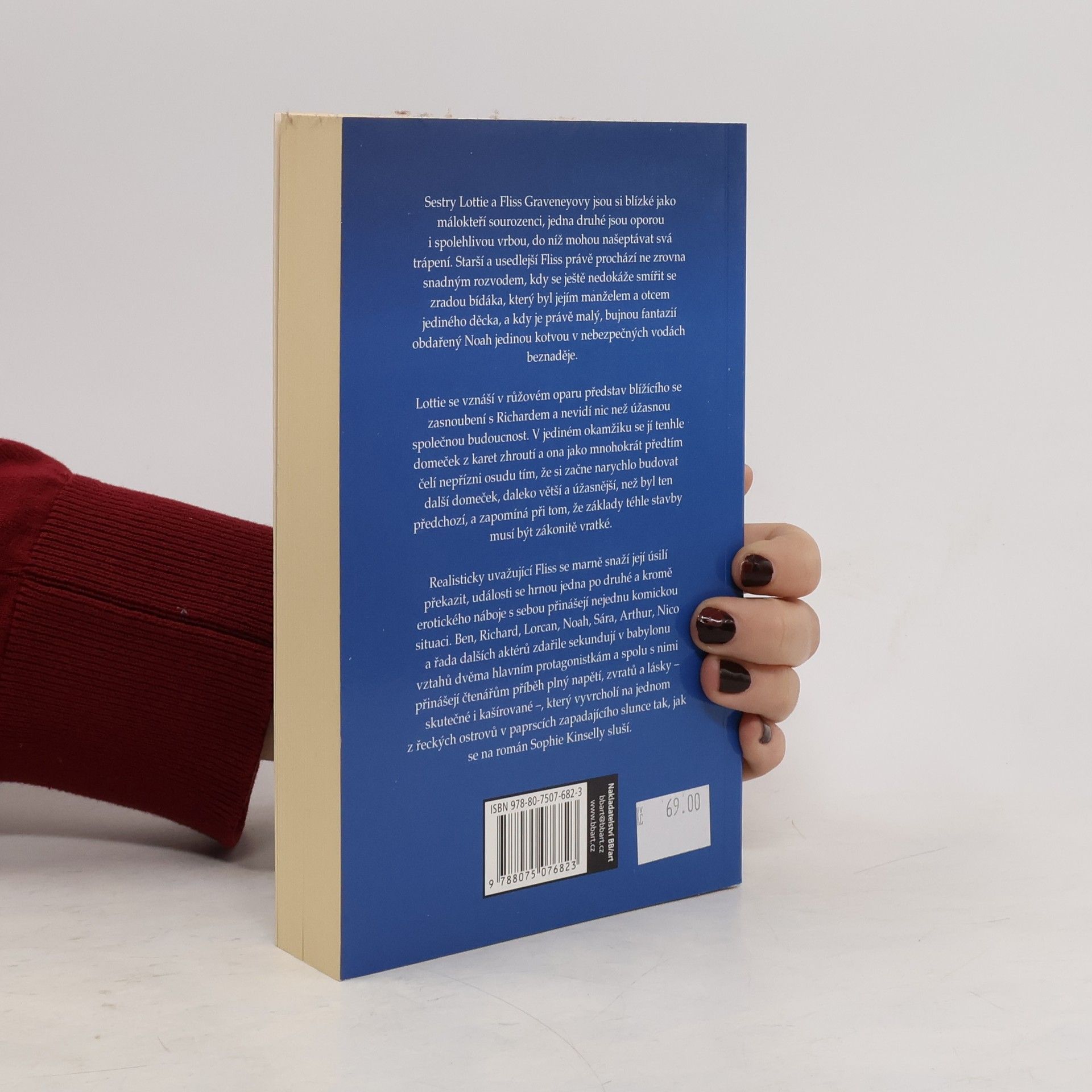 Sestry Lottie a Fliss Graveneyovy jsou si blízké jako málokteří sourozenci, jedna druhé jsou oporou i spolehlivou vrbou, do níž mohou našeptávat svá trápení. Starší a usedlejší Fliss právě prochází ne zrovna snadným rozvodem, kdy se ještě nedokáže smířit se zradou bídáka, který byl jejím manželem a otcem jediného děcka, a kdy je právě malý, bujnou fantazií obdařený Noah jedinou kotvou v nebezpečných vodách beznaděje. Lottie se vznáší v růžovém oparu představ blížícího se zasnoubení s Richardem a nevidí nic než úžasnou společnou budoucnost. V jediném okamžiku se jí tenhle domeček z karet zhroutí a ona jako mnohokrát předtím čelí nepřízni osudu tím, že si začne narychlo budovat další domeček, daleko větší a úžasnější, než byl ten předchozí, a zapomíná při tom, že základy téhle stavby musí být zákonitě vratké. Realisticky uvažující Fliss se marně snaží její úsilí překazit, události se hrnou jedna po druhé a kromě erotického náboje s sebou přinášejí nejednu komickou situaci. Ben, Richard, Lorcan, Noah, Sára, Arthur, Nico a řada dalších aktérů zdařile sekundují v babylonu vztahů dvěma hlavním protagonistkám a spolu s nimi přinášejí čtenářům příběh plný napětí, zvratů a lásky – skutečné i kašírované –, který vyvrcholí na jednom z řeckých ostrovů v paprscích zapadajícího slunce tak, jak se na román Sophie Kinselly sluší.